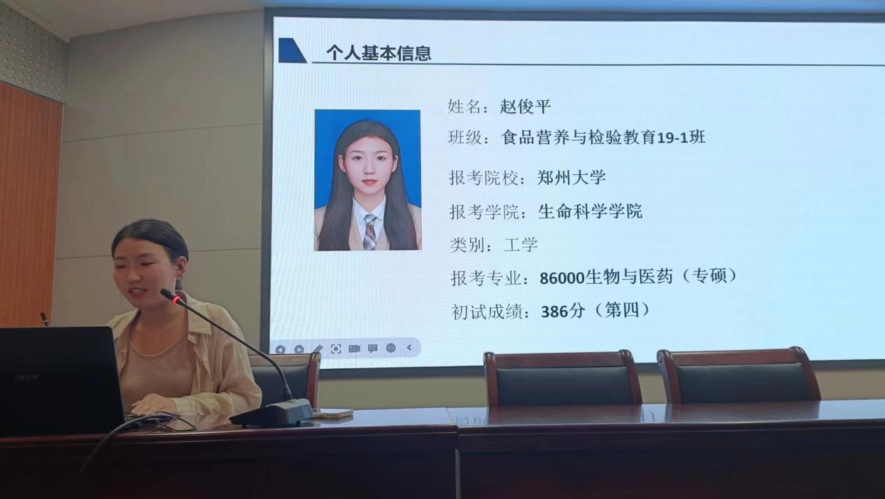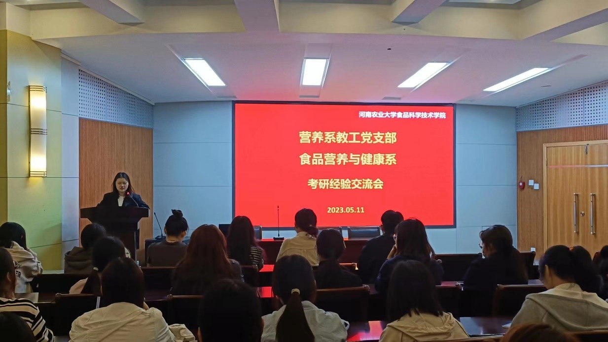 营养系教工党支部、食品营养与健康系共同组织下,于校区100人报告厅组织举办了为师生办实事系列活动之考研经验交流会。此次交流会诚邀成功“上岸”的高分同学——张波、赵俊平、赵楠雨、李雨蒙、孟浩、龚秋洋进行考研经验分享。党建中心尤俊尧主持此次会议,营养系高晓平、雷萌萌、沈玥三位老师出席会议,食品营养与检验教育、食品营养与健康及其他相关专业有志考研的各年级同学100余人参加了本次考研经验交流会。