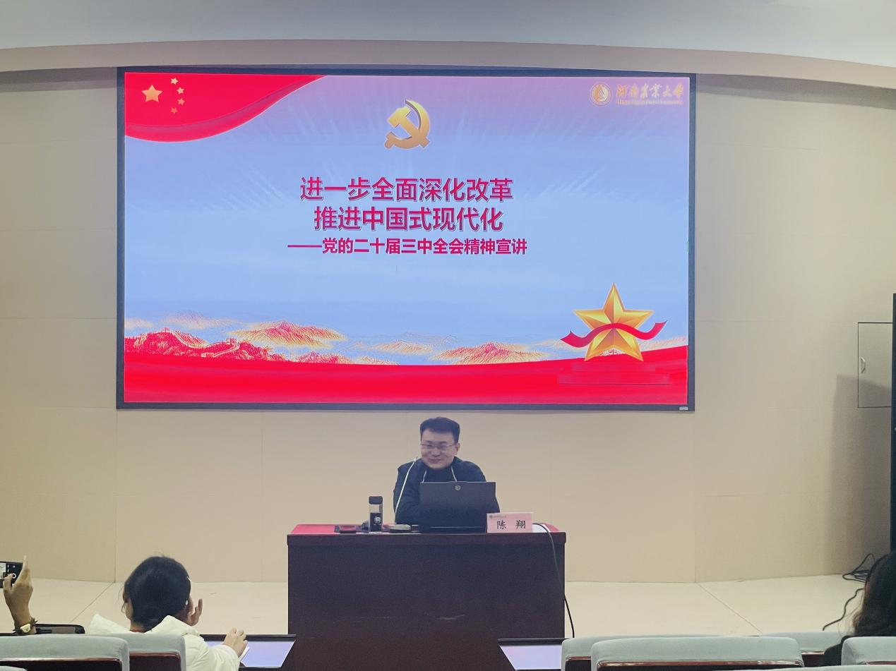 陈翔与在场的发展对象和学生干部们就热点问题进行了深入的交流和讨论,共同探讨了在当前形势下,青年学生应承担的社会责任和历史使命。陈翔强调,新时代的青年必须积极学习党的理论、路线方针政策,不断提升个人素质,为实现中华民族伟大复兴的中国梦贡献青春力量。他特别提到了党的二十届三中全会对于国家发展的重要意义,指出党的二十届三中全会作为党的重要会议,不仅为国家的未来发展指明了方向,也为青年学生的成长提供了重要指引。在讨论过程中,发展对象们积极发表意见,分享了他们对于如何在学习和生活中实践社会主义核心价值观的理解和体会。这次交流使大家对如何更有效地发挥学生干部的先锋模范作用有了更深刻的理解。