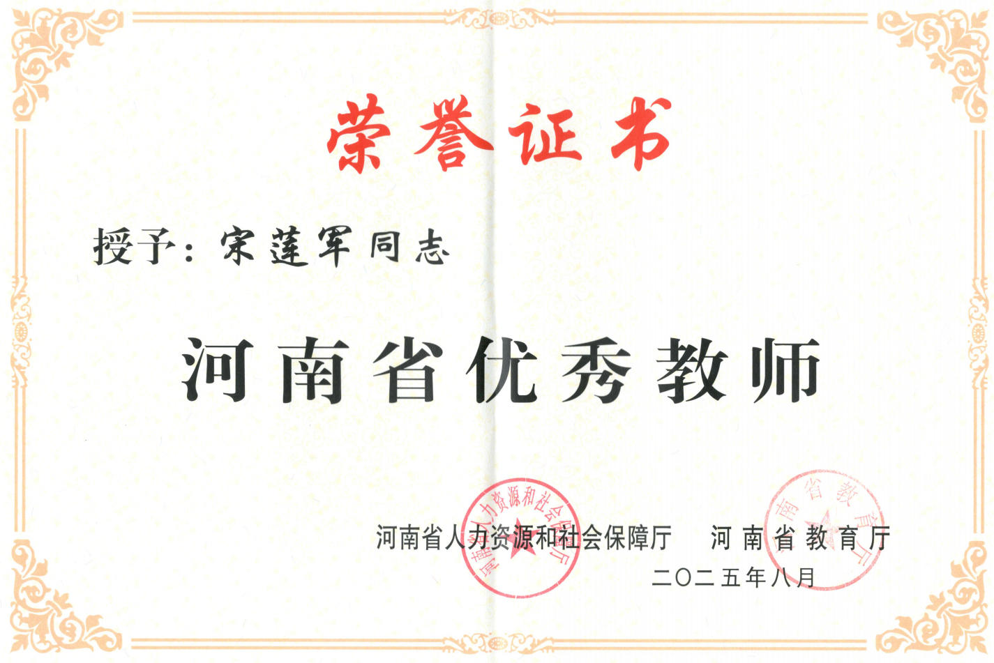 热烈祝贺哔咔漫画宋莲军教授荣获“河南省优秀教师”荣誉称号!