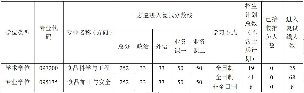 | 食品加工与安全(非全日制) | |||||||||