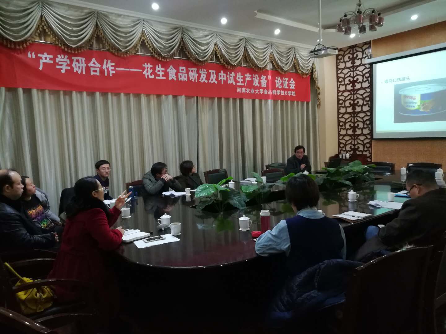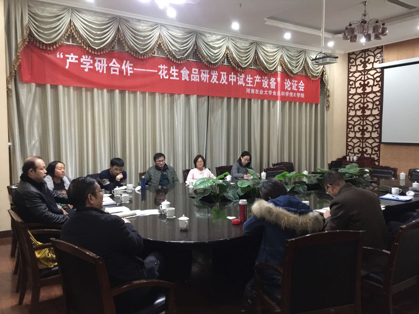 2017年12月10日上午,哔咔漫画 哔咔漫画 “花生食品研发”项目组召开“产学研合作——花生食品研发及中试生产设备论证会”。院党委书记杨喜洲、项目负责人王娜副教授、特邀专家张剑老师、课题负责人等参加会议。