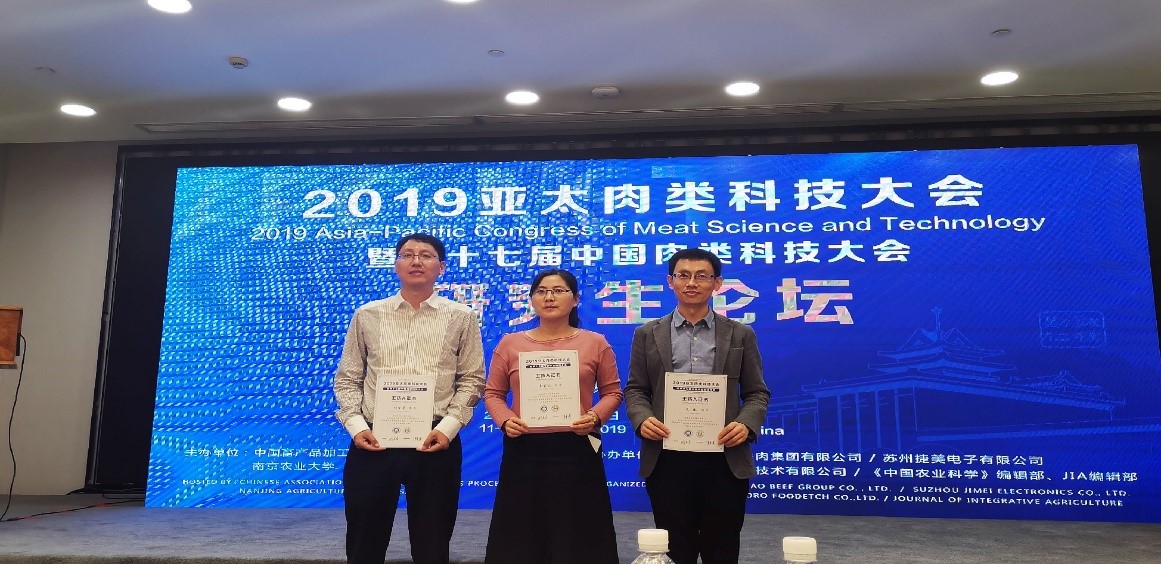 本次大会报告涉及领域宽、研究水平高,代表了肉品界的国际水平。同时大会收到百余篇会议论文,其中哔咔漫画研究生吴慧琳同学论文《灰色关联建立酸肉电子鼻与感官相关性的应用》荣获优秀会议论文。