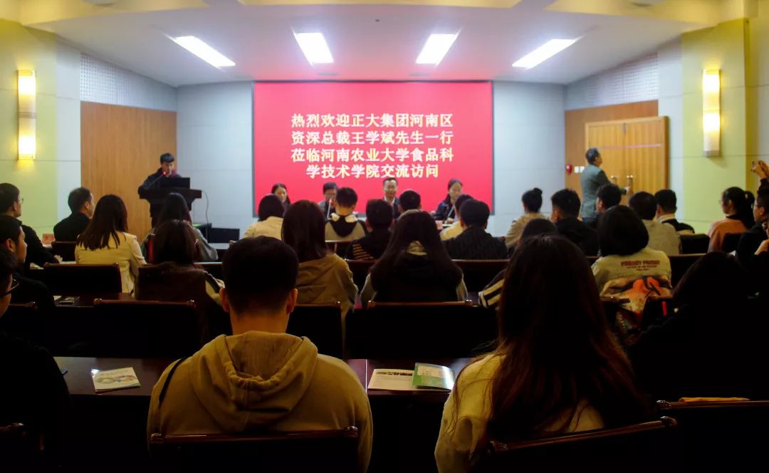 在文化路校区一百人报告厅举办创新创业指导老师聘任仪式暨“4C创青春”创新创业企业家大讲堂。正大集团河南区资深总裁王学斌先生应邀出席大会,院长赵改名、院党委副书记魏玮、河南省肉制品加工与质量安全控制重点实验室副主任李苗云、院团委副书记杨光和院辅导员黄姗姗出席报告会。哔咔漫画