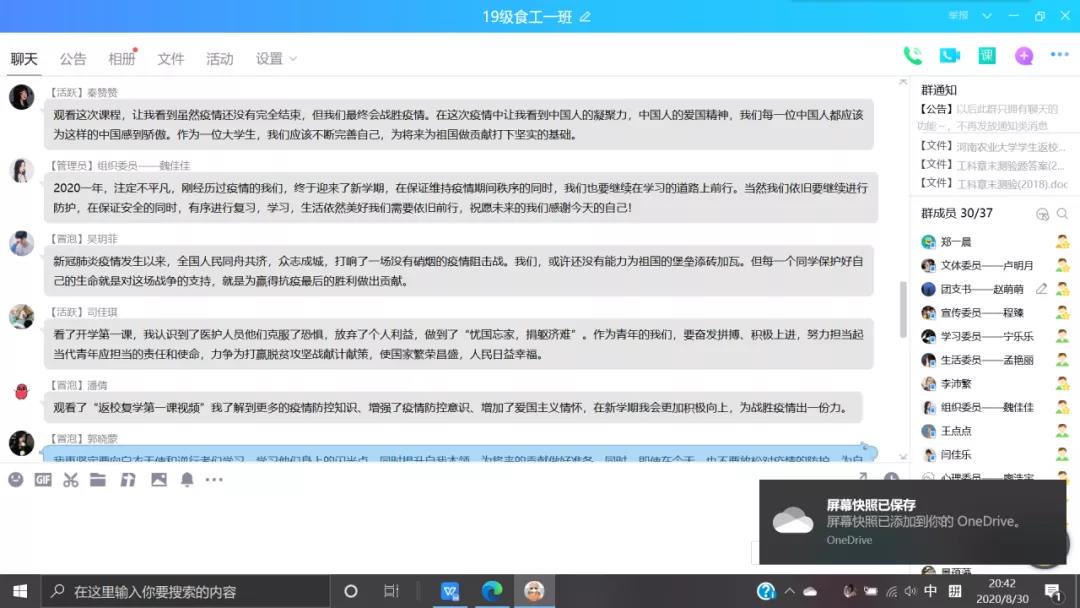 活动过程中,各班长、支书以宿舍为单位组织学生观看河南高校“返校复学第一课”、哔咔漫画