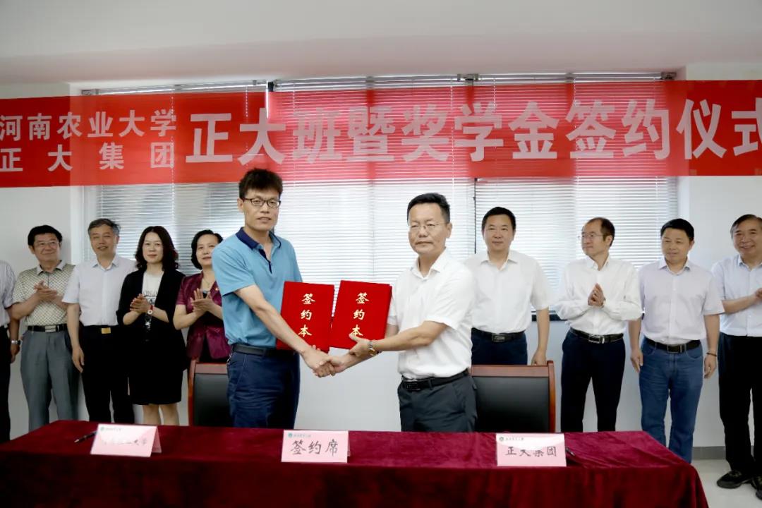 尹新明代表学校向正大集团王鸿章一行的到来表示热烈欢迎。她表示,正大集团与我校开展校企合作,设立正大班,选拔培育优秀人才,为农大学子积极搭建创新创业平台,正是坚持系统培养、个性服务,拓宽大学生创新创业渠道的重要举措。相信通过实施正大“正大班”计划,一定能够在全校范围内进一步营造创新创业氛围,提升学生创新创业能力,通过有目的、有计划、有针对性地遴选和个性化培养,有信心打造出一批德才兼备的优秀创新型人才。同时,也希望通过此次人才培养的合作,带动科研等其他方面的合作,助力乡村振兴和推动中原更加出彩方面不断做出新的更大贡献!
