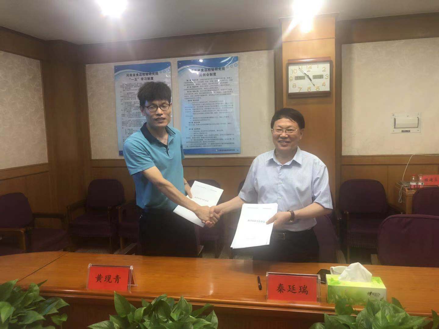 与河南省食品检验研究院签订教学科研合作协议。河南省食品检验研究院院长秦廷瑞对此次合作给予高度重视,并指出要构建“产教融合、协同育人”的实践教学体系,以提高人才培养质量。双方将集中优势力量,联合组建创新团队,积极联合申报各级各类科研项目。定期展开学术交流活动,培养优秀毕业生人才。