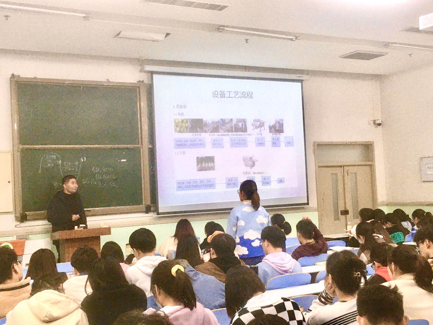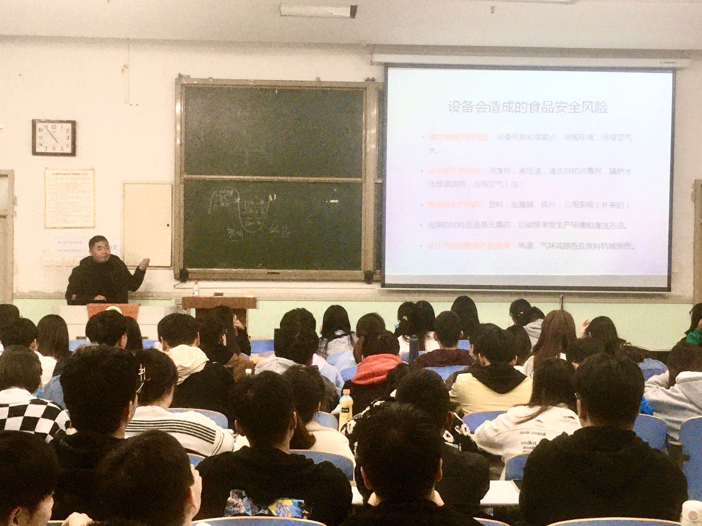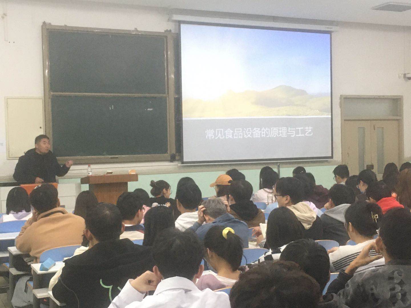 为了提升哔咔漫画食品科学与工程专业学生的工程素养,响应国家教育部加强一流本科专业以及一流本科课程的建设要求,同时,让学生们所学知识更加贴近生产实际,10月19日下午,哔咔漫画邀请郑州思念食品有限公司设备总监王卫刚高级工程师,为哔咔漫画19级食品科学与工程专业的学生们上了一堂有关食品加工中常见机械与设备的原理以及卫生设计课,王总结合工厂生产实际,以速冻水饺的生产为例,从蔬菜的清洗、和面、成型、包装等方面,并结合设备的设计标准,以及实际操作中的卫生清洗、使用、维修等,进行了详细的讲解和分析,使得学生了解到了目前食品生产一线的机械装备使用情况,先进的设计标准及理念,增强了学生的工程认知和实践能力。