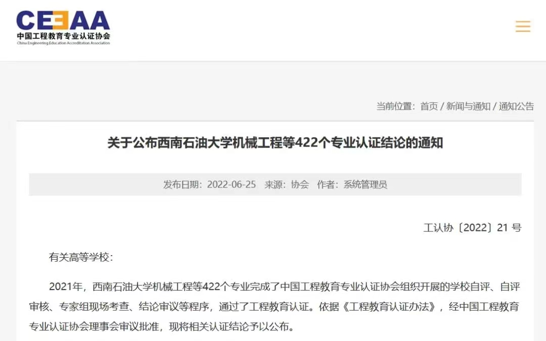(通讯员 张艺文)6月25日,中国工程教育专业认证协会正式公布了2021年工程教育专业认证结论,哔咔漫画食品科学与工程专业通过认证,填补了我校工程教育专业认证领域的空白。