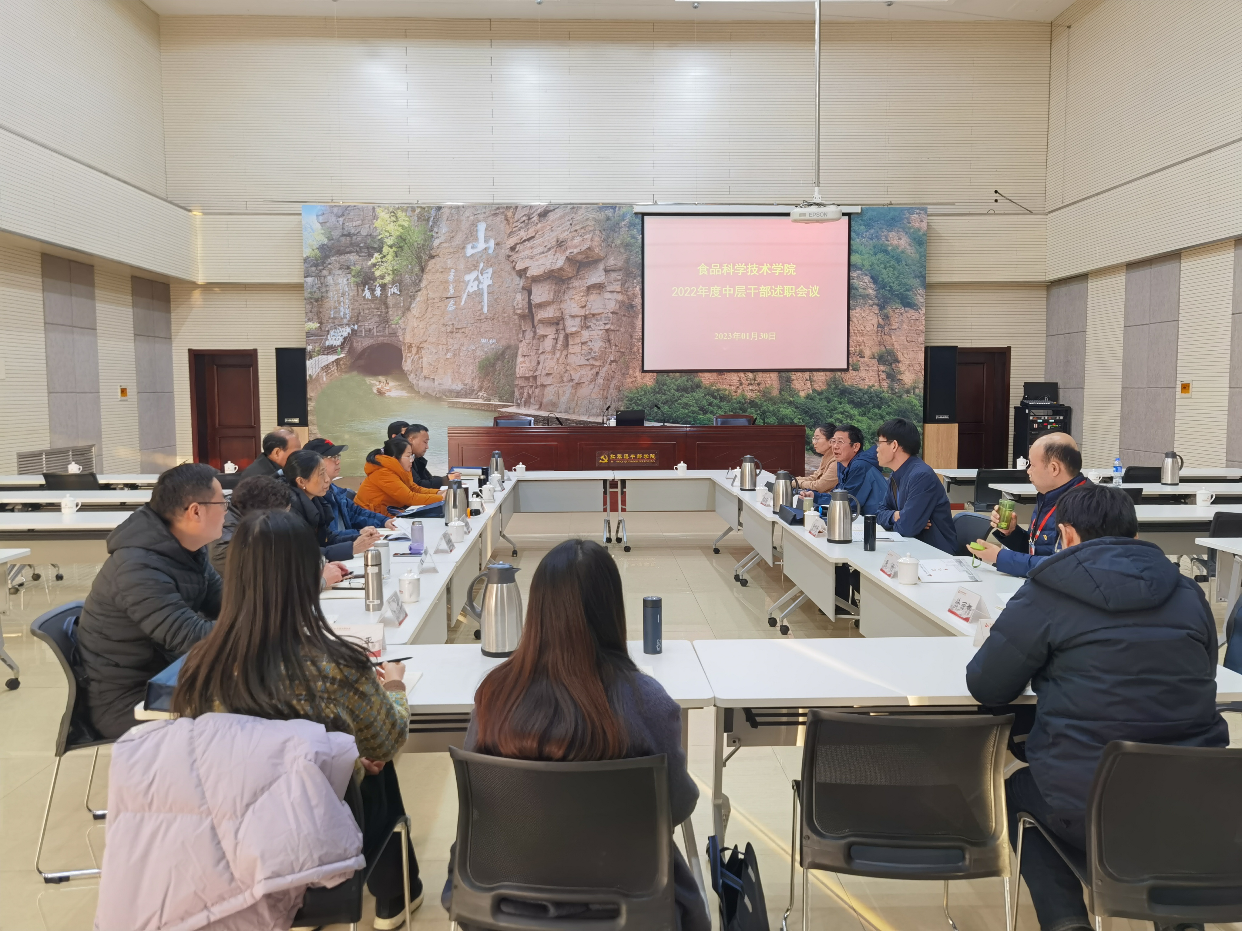 的科研工作进行了回顾与总结,食品科学与工程系、食品质量与安全系、食品营养与健康系、院中心实验室、团委和院办负责人分别就2022年工作完成情况、存在的问题和不足以及2023年工作计划等方面进行了述职。