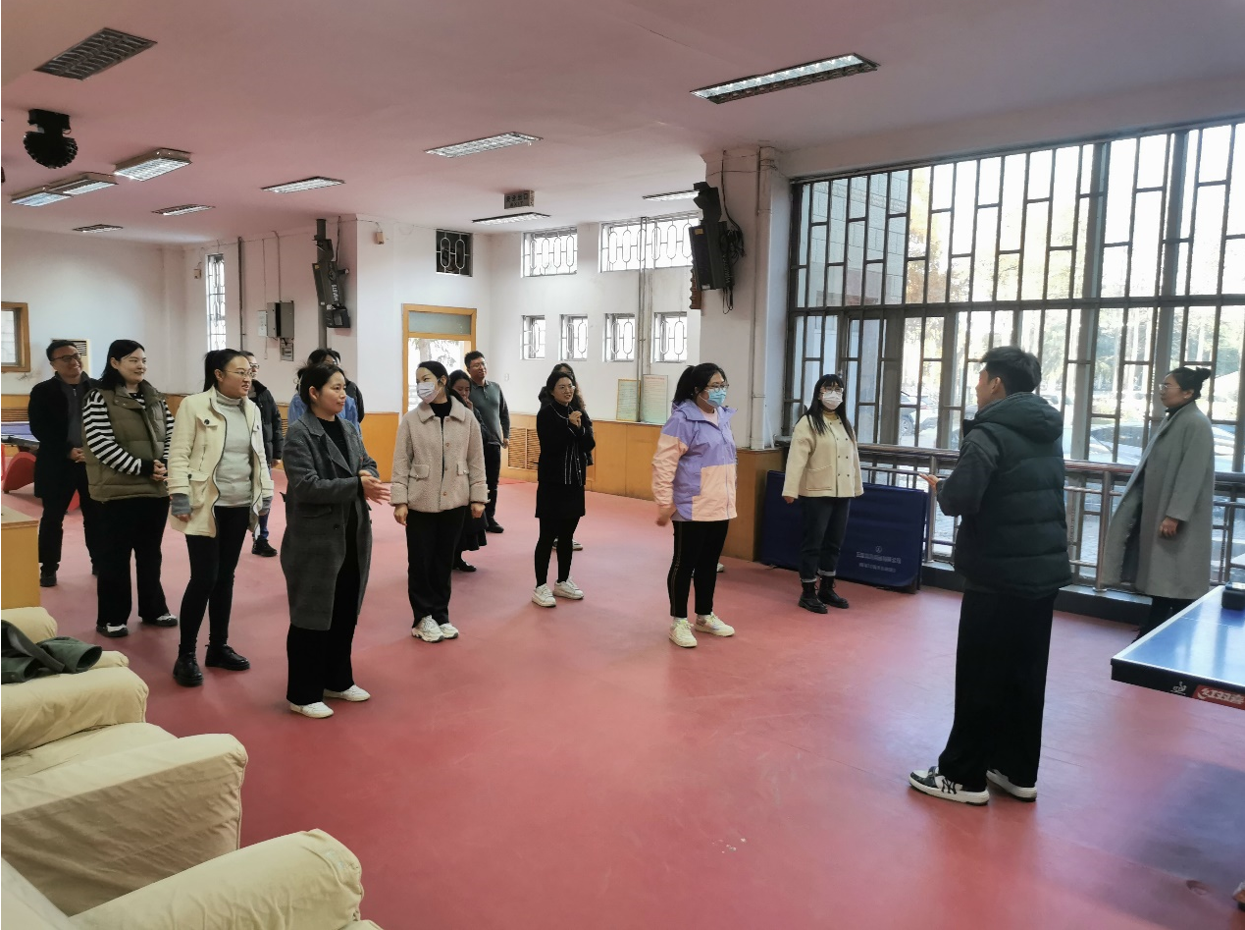 八段锦是一套独立而完整的健身功法,具有健身祛病功效。在牛老师的亲身示范和耐心指导下,大家积极地讨论动作要领,配合呼吸舒展身心,努力将动作做到完美。现场气氛轻松活跃,在相互鼓励、彼此勉励的同时,大家共同享受着紧张工作之余的放松与惬意。教职工们纷纷表示,本次活动能够帮助其舒展身心,缓解压力,增强锻炼意识,使自身能够以更加饱满的热情、更健康的身体投入到生活与工作中去。