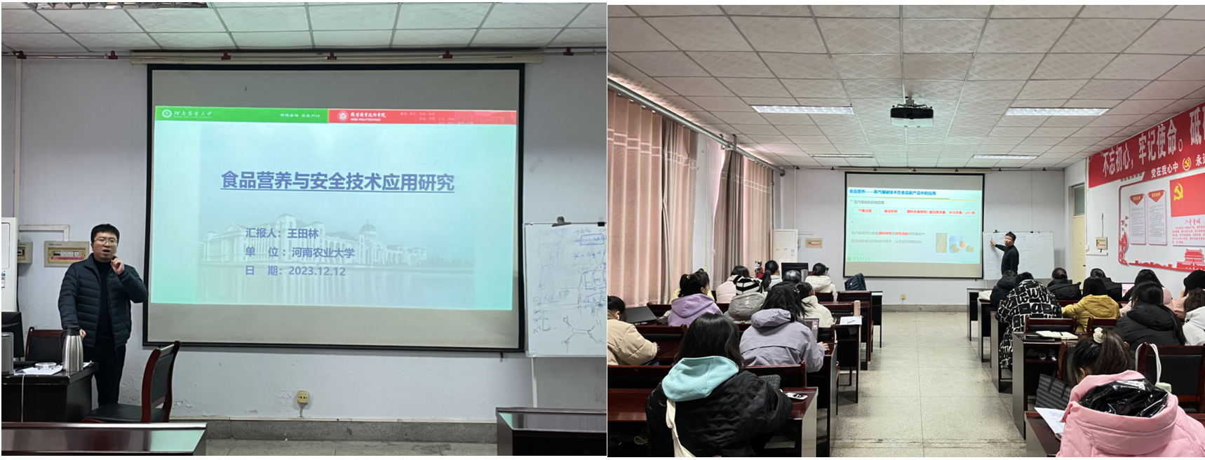 王田林博士以诙谐幽默的语言将在座研究生带入到报告会中,他生动地讲解了食品营养与安全技术应用研究,其中主要介绍了蒸汽爆破技术以及它在食品副产品中的应用。报告期间,王田林老师还讲述了论文写作的经验与技巧,在场研究生受益匪浅。