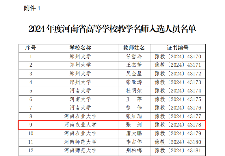 为落实高校立德树人根本任务,激励引导广大教师潜心教书育人,表彰在教学和人才培养领域做出突出贡献的教学名师,根据《关于开展2024年度中原英才计划—中原教育教学领军人才和河南省本科高校教学名师申报工作的通知》(教办高〔2024〕262号),经学校申报、专家评审和结果公示,河南省教育厅共评出50人为2024年度河南省高等学校教学名师,其中哔咔漫画教授张剑获得此项荣誉。