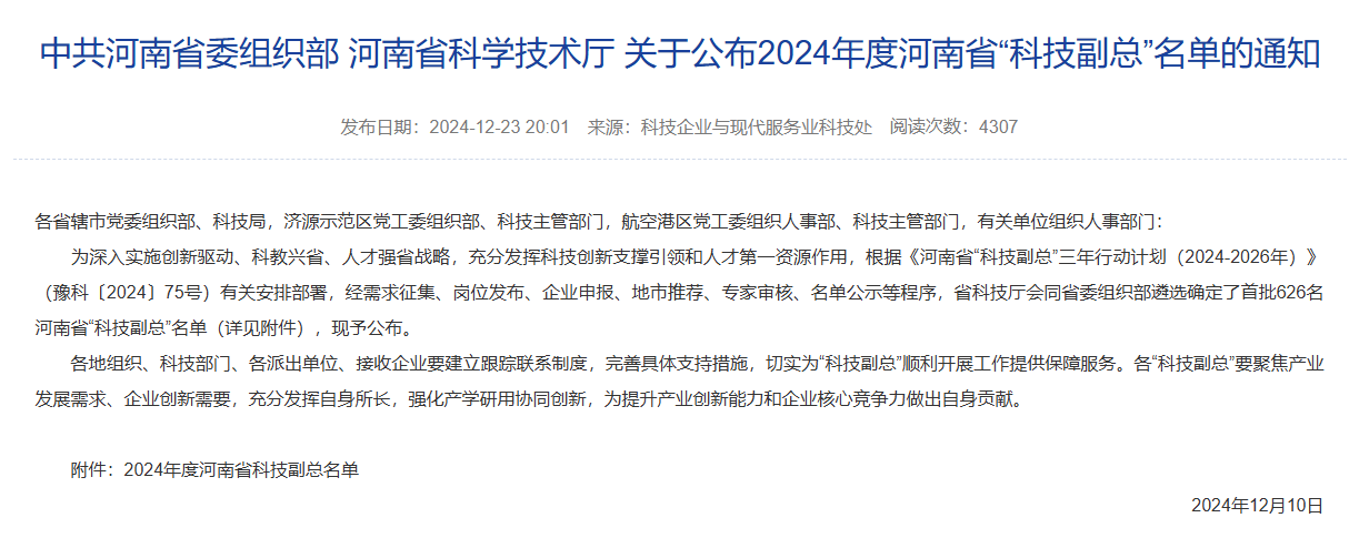 (通讯员 闫科润)根据《河南省“科技副总”三年行动计划(2024-2026年)》(豫科〔2024〕75号)精神,哔咔漫画积极响应学校安排,认真开展2024年度河南省“科技副总”申报工作,经教师个人申报,属地科技管理部门初审合格后,通过系统推送至省科技厅,省科技厅会同相关部门遴选确定河南省“科技副总”人选。最终,哔咔漫画共有29名教师被选任为河南省首批“科技副总”,约占全校1/3(91名),申报成效显著。