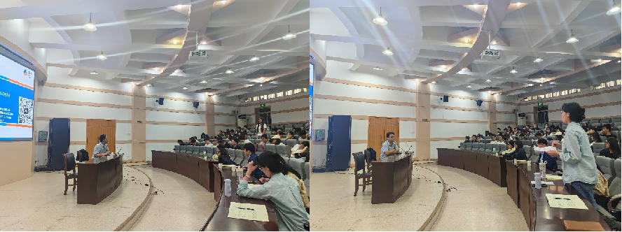 最后,在互动交流环节,张院长鼓励同学们结合王高工的案例分享和自身对专业知识、行业实践的思考,踊跃提问,体现出新时代大学生勤思善问、追求卓越的精神风貌。王永巍高工就学生们的问题,如如何合理进行厂区规划、图纸绘制要求及注意事项以及未来就业问题等进行了认真详细地解答。
