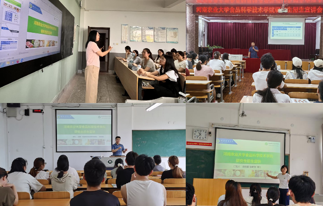 的统一领导和周密规划下,由副院长张剑教授、李瑜教授、潘治利教授、安艳霞副教授、张西亚副教授、崔文明副教授、余秋颖副教授、王田林博士、李家寅博士、程李琳博士、梁单博士等骨干教师组成多支精干队伍,分赴豫北、豫中、豫南、豫东多地高校。宣讲活动覆盖面广,针对性突出,有效对接了省内应用型本科院校食品及相关专业学生的深造需求。