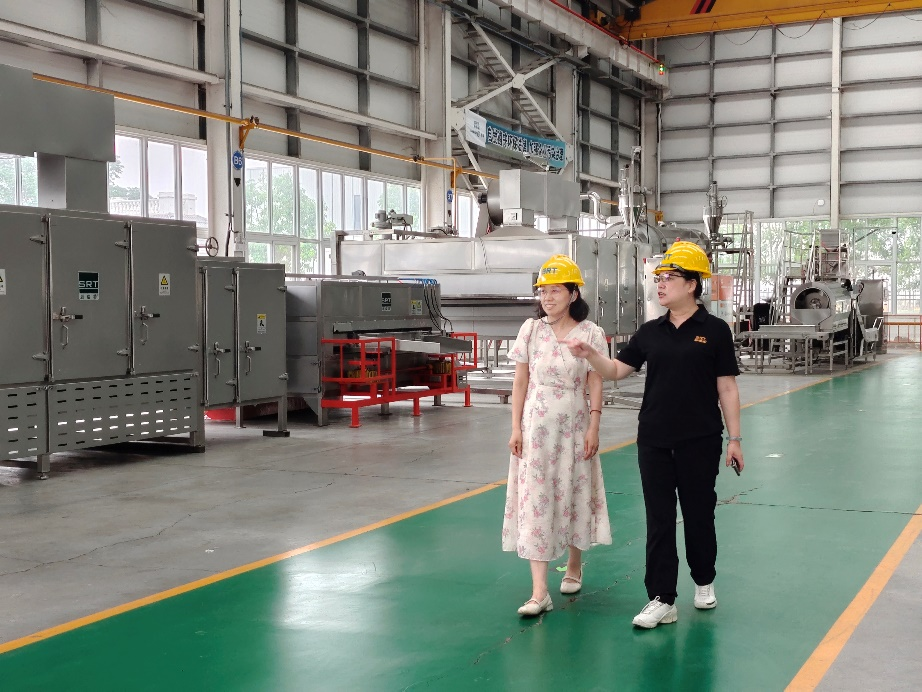 开封朗瑞机械是国家级高新技术企业,专注于食品干燥设备、坚果加工机械及智能控制系统的研发与生产。 在李宁教授一行抵达后,公司董事长张凡陪同参观了智能化生产车间。在坚果加工设备装配线前,李宁教授详细询问了设备运行参数和工艺流程,结合自身在食品营养与安全领域的研究专长,与企业技术团队深入探讨了智能化农产品加工装备的优化方案,并就节能干燥技术、自动化控制升级等关键技术问题提出指导意见。
