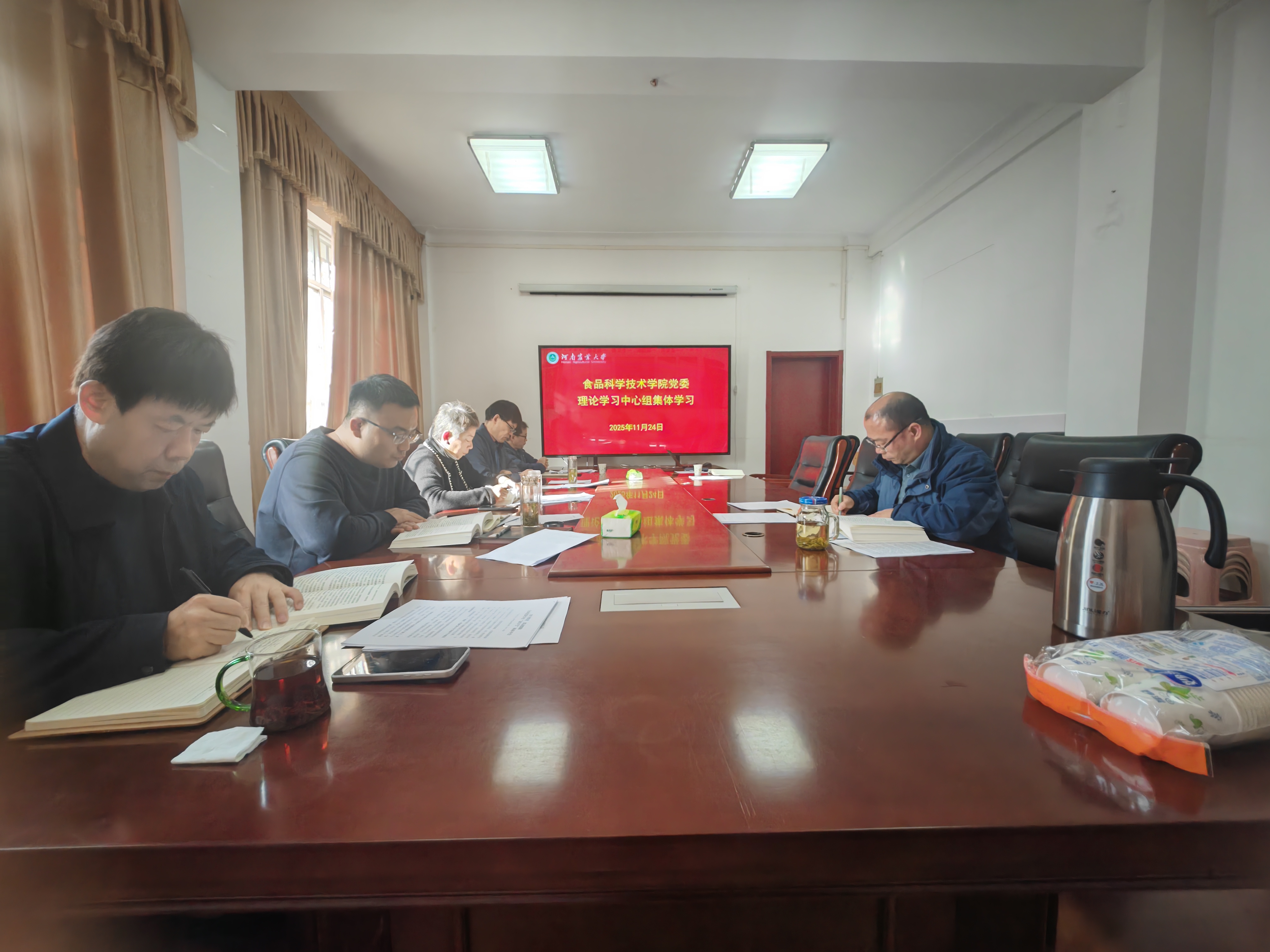 举行党委理论学习中心组集体学习,专题学习《习近平谈治国理政》第五卷中关于发展新时代中国特色社会主义文化的重要论述和校党委关于建强“国字号”科研平台的会议精神。院党委书记吴旭静主持会