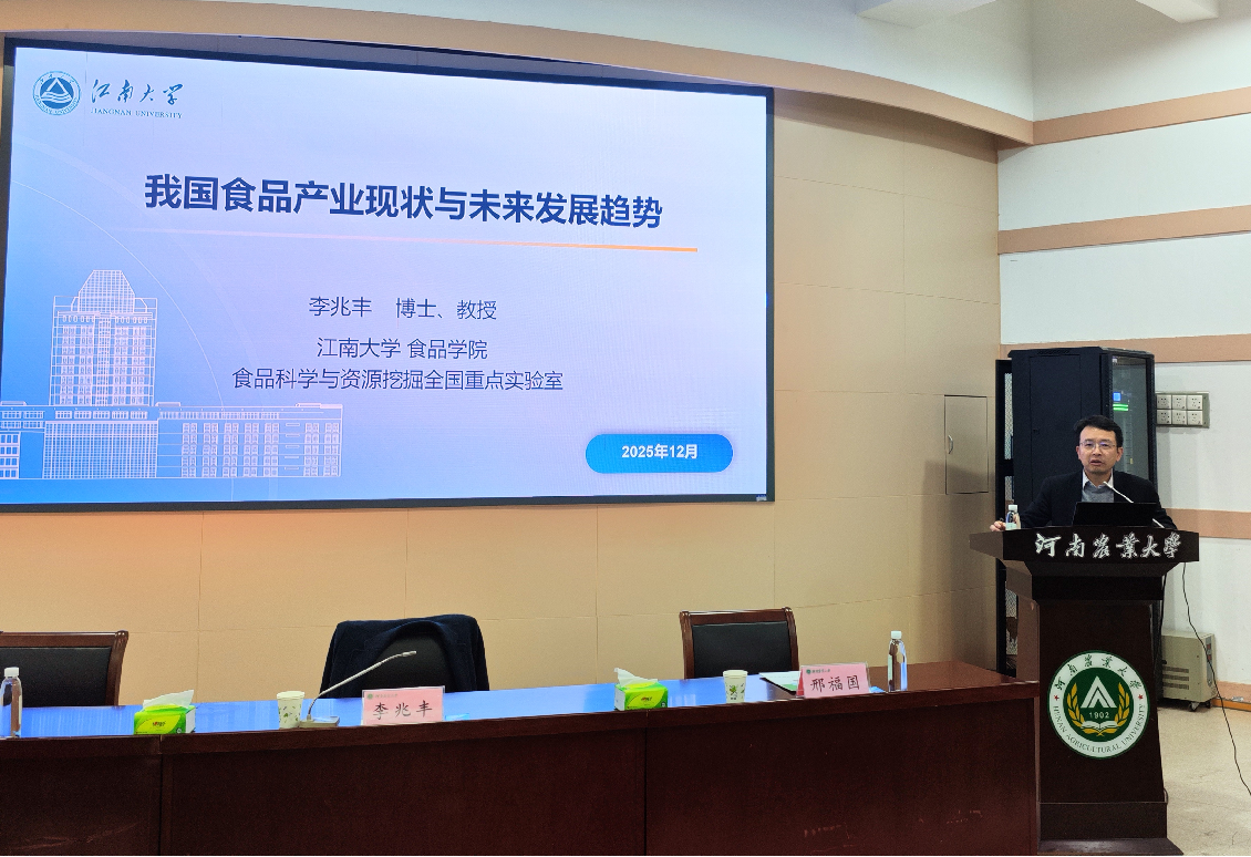 李兆丰以《我国食品产业现状与未来发展趋势》为题作学术报告。他从战略高度系统剖析了我国食品产业的现状、挑战与机遇,指出食品产业作为国民经济的重要支柱,具有“大结构、大规模、大利润、大物流、大聚集、大园区、大龙头、大格局、大安全”的显著特征。面对新发展阶段,产业亟需依靠“新科技、新品质、新品类、新业态、新竞争、新布局、新零售”实现转型升级。他在深入分析当前产业面临“忧资源、忧技术、忧安全、忧营养”等核心挑战的同时,也指明了在“高质化、城镇化、农业产业化、健康化、工业化、人口老龄化”等背景下孕育的重大发展机遇。整场报告视野宏阔、逻辑严密,为师生把握行业脉络、明确发展方向提供了重要指引。