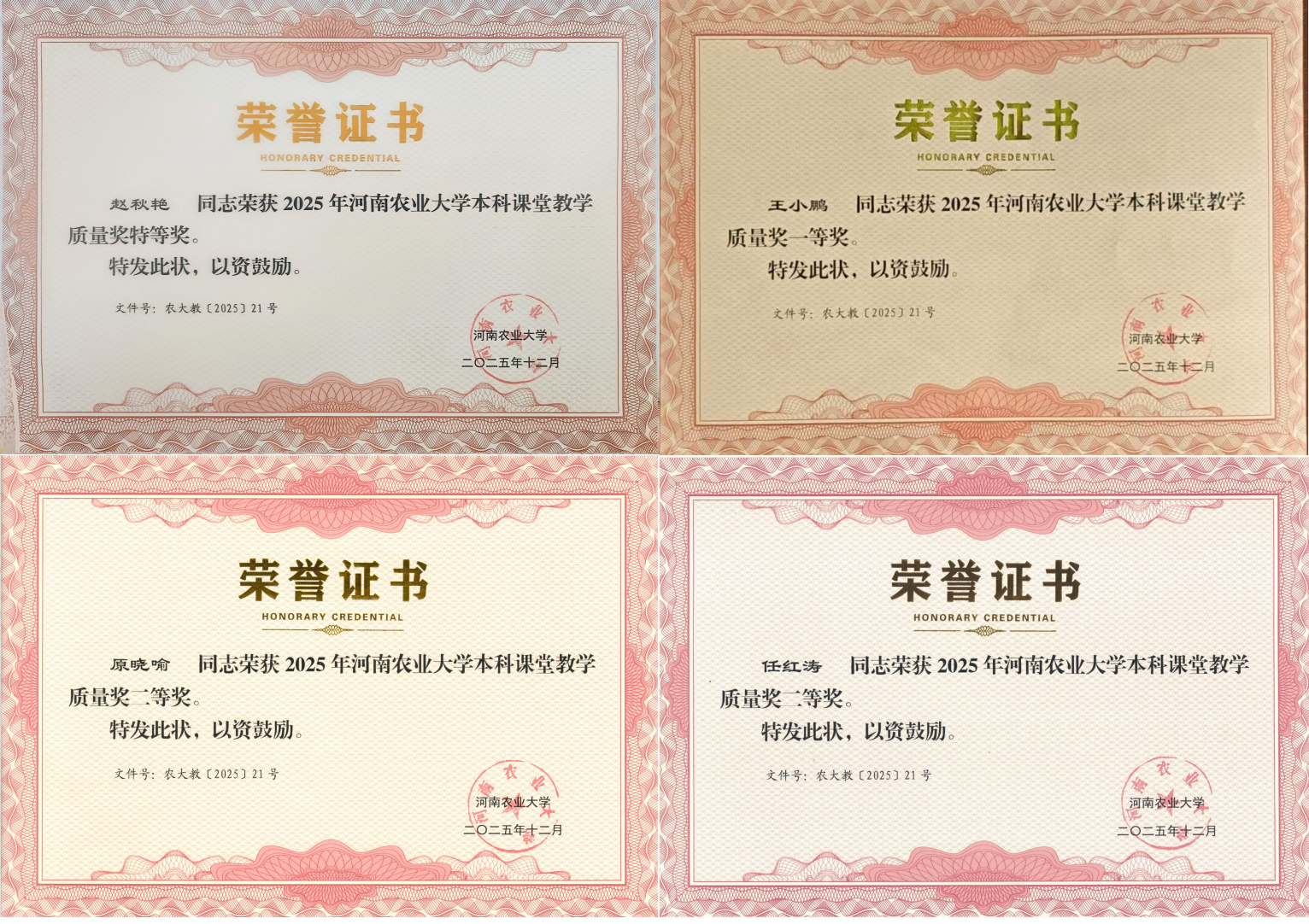 王小鹏副教授积极参与《食品工厂设计与环境保护》教学改革,持续推动课程数字化转型。课程团队贯彻“学生中心、成果导向”理念,以项目式教学驱动课堂,实施全过程多元化考核,有效培养学生的工程思维与实践能力。课程建设成果显著,先后获评“校课程考核改革项目优秀一等奖”、“河南省本科高校研究性教学示范课程”和“第五届省教创赛一等奖”等荣誉。