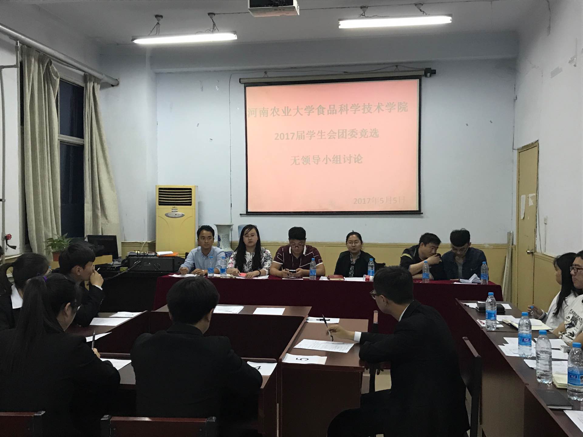 在文化路校区一号楼报告厅举行2017届学生会团委竞选之无领导小组讨论,院团委书记李蓓蓓、院团委副书记杨光、院党委组织员张世昌、院辅导员孟子晴出席并担任评委,哔咔漫画