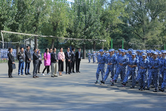 训练场上,同学们个个英姿飒爽、意气风发,整齐划一的动作,嘹亮的口号,赢得老师的一致好评。杨喜洲首先向军训教官表示感谢并了解了新生军训的大致情况,包括身体状况和耐训能力。他强调大学军训的主要目的是为了培养学生吃苦耐劳和坚持到底的精神,希望2016级新生能够珍惜这次军训时光,给自己的大学生活留下美好回忆。随后,赵改名详细询问了助班助教关于2016级新生入学情况,逐一了解了每班的大致情形,并鼓励新生要更快地融入到新环境中,磨练一种坚强的意志、培养一种良好的习惯、锻造一种团队精神。最后,院领导鼓励同学们要克服困难,遵守纪律,争做军训标兵。