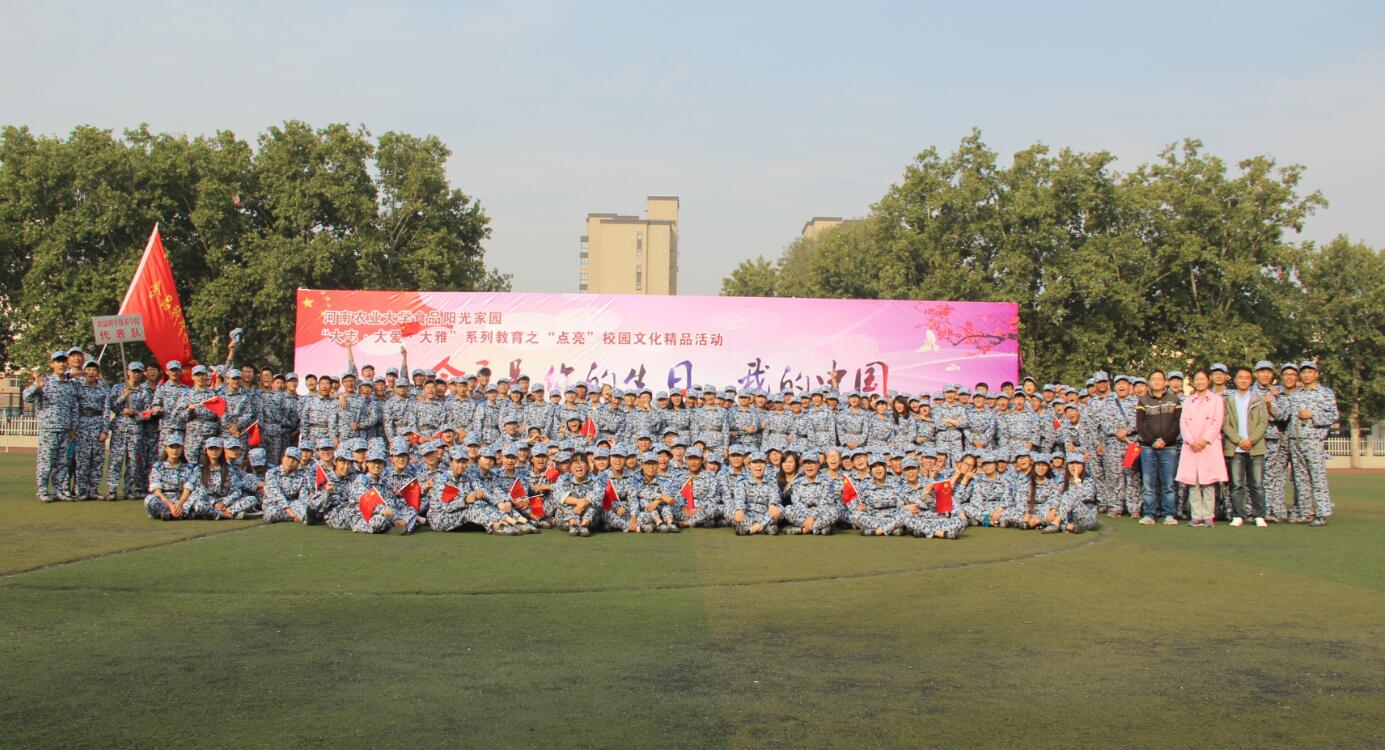 在文化路校区操场举行食品阳光家园“大志·大爱·大雅”“点亮”校园文化暨为祖国献礼之阳光“三走”活动。院党委副书记魏玮、院团委书记李蓓蓓、院团委副书记杨光、院党委组织员张世昌来到现场,学生会主要干部及2016级全体新生参加活动。
