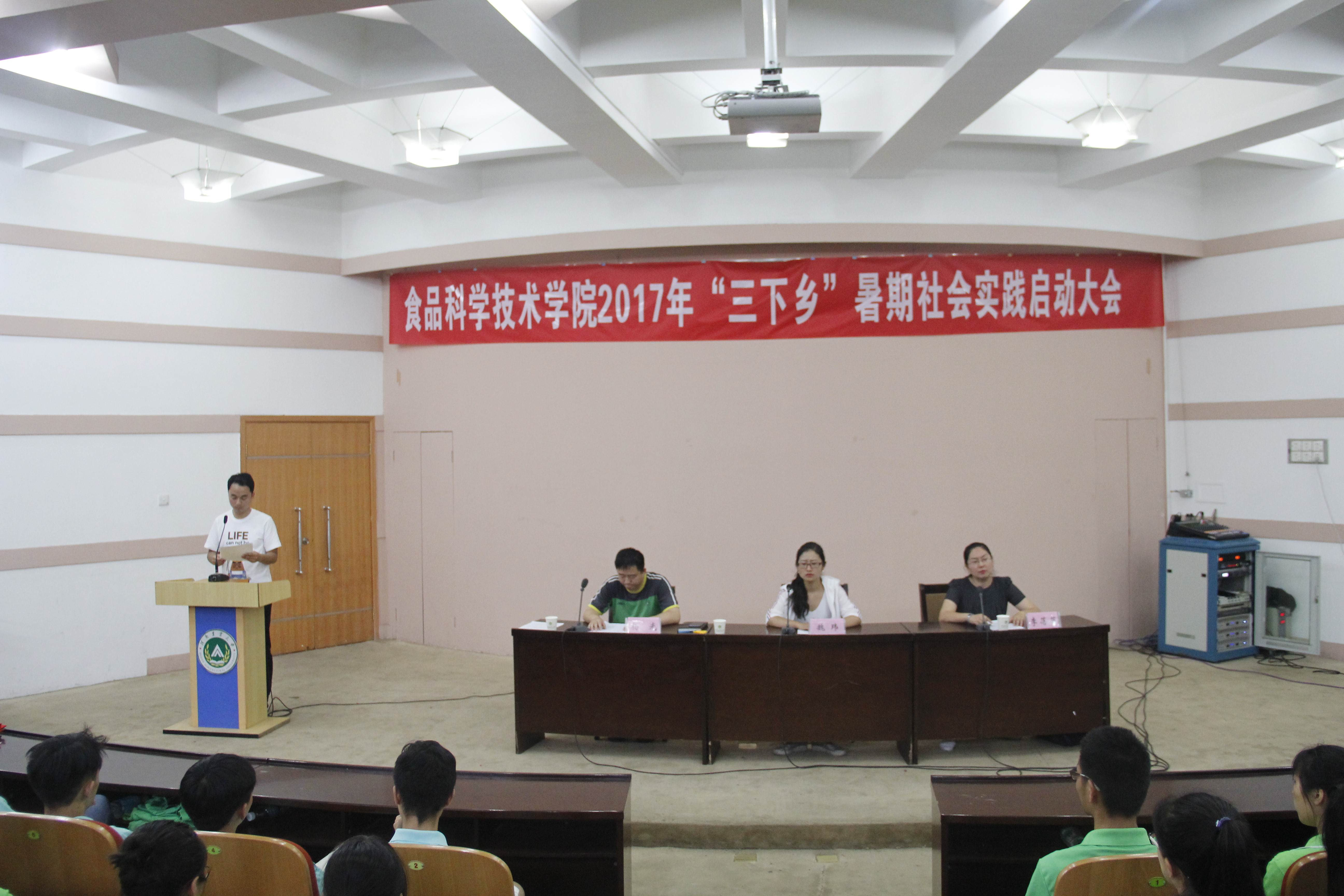 在文化路校区三百人报告厅隆重举行2017年“三下乡”暑期社会实践启动大会,院党委副书记魏玮,院团委书记李蓓蓓,院团委副书记杨光出席大会,哔咔漫画