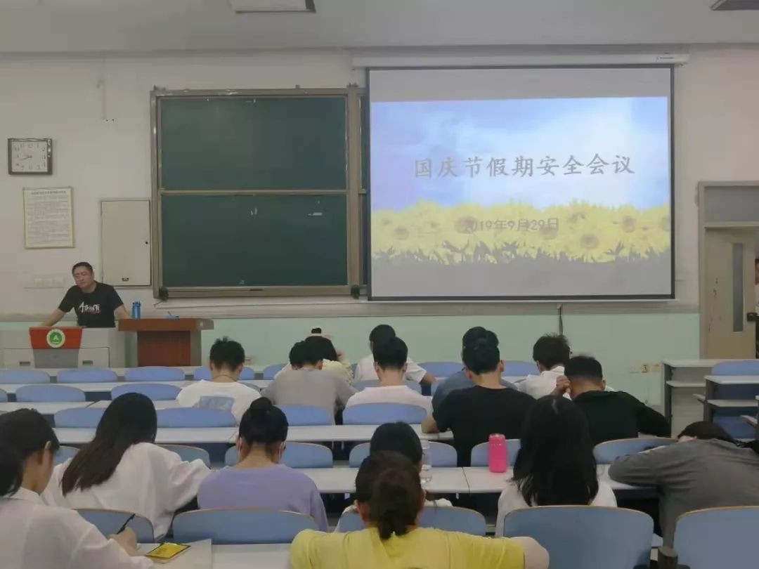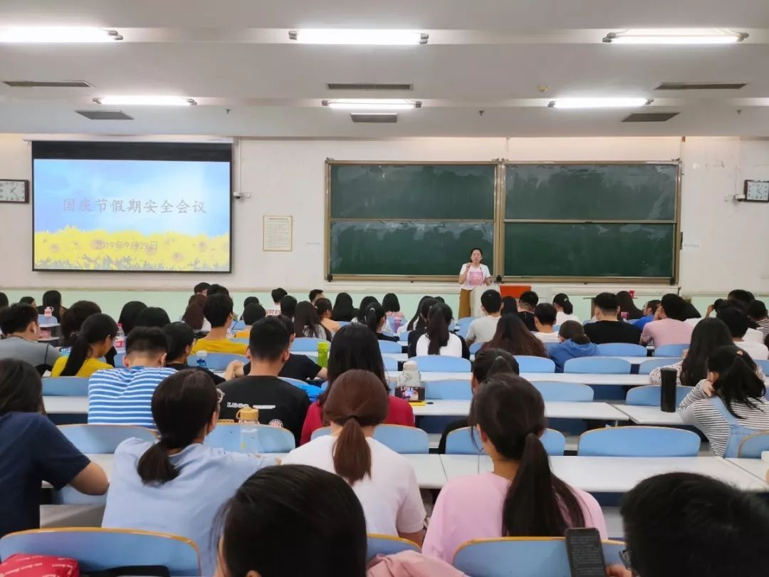 分别在文化路校区工程楼101、103教室召开了十一假期安全稳定会议。院团委书记李蓓蓓、院团委副书记杨光出席会议,16、17、18级全体学生参加会议。