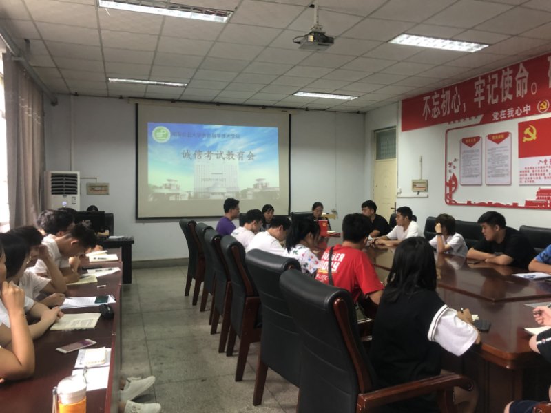 在文化路校区17号楼405教室召开期末诚信考试教育会。院团委书记李蓓蓓及院辅导员黄姗姗出席会议,学院各班班长、支书参加会议。