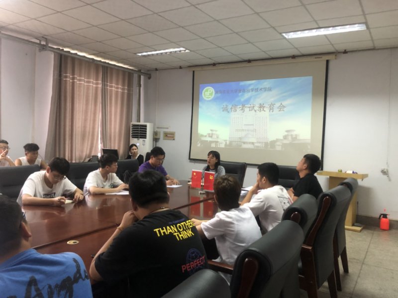 会议伊始,李蓓蓓李蓓蓓结合往年事例,强调考风考纪的严肃性和违纪处理的严重性,传达学校对考试的重视,希望同学们充分认识到诚信考试的必要性。接着,李蓓蓓指出,各班学习委员要做好考试时间、地点的通知工作,避免出现学生错过考试甚至逃避考试的现象。黄姗姗告诫同学们要时刻将“诚信考试”当做警戒线,并指出考试不及格只是现阶段成绩不理想,而考试作弊将严重影响考生的身心及今后的自身发展。希望各班委考试期间做好动员工作,进一步督促学生加强诚信考试的意识,带领班级同学一起复习备考,做好充足的准备迎接期末考试。