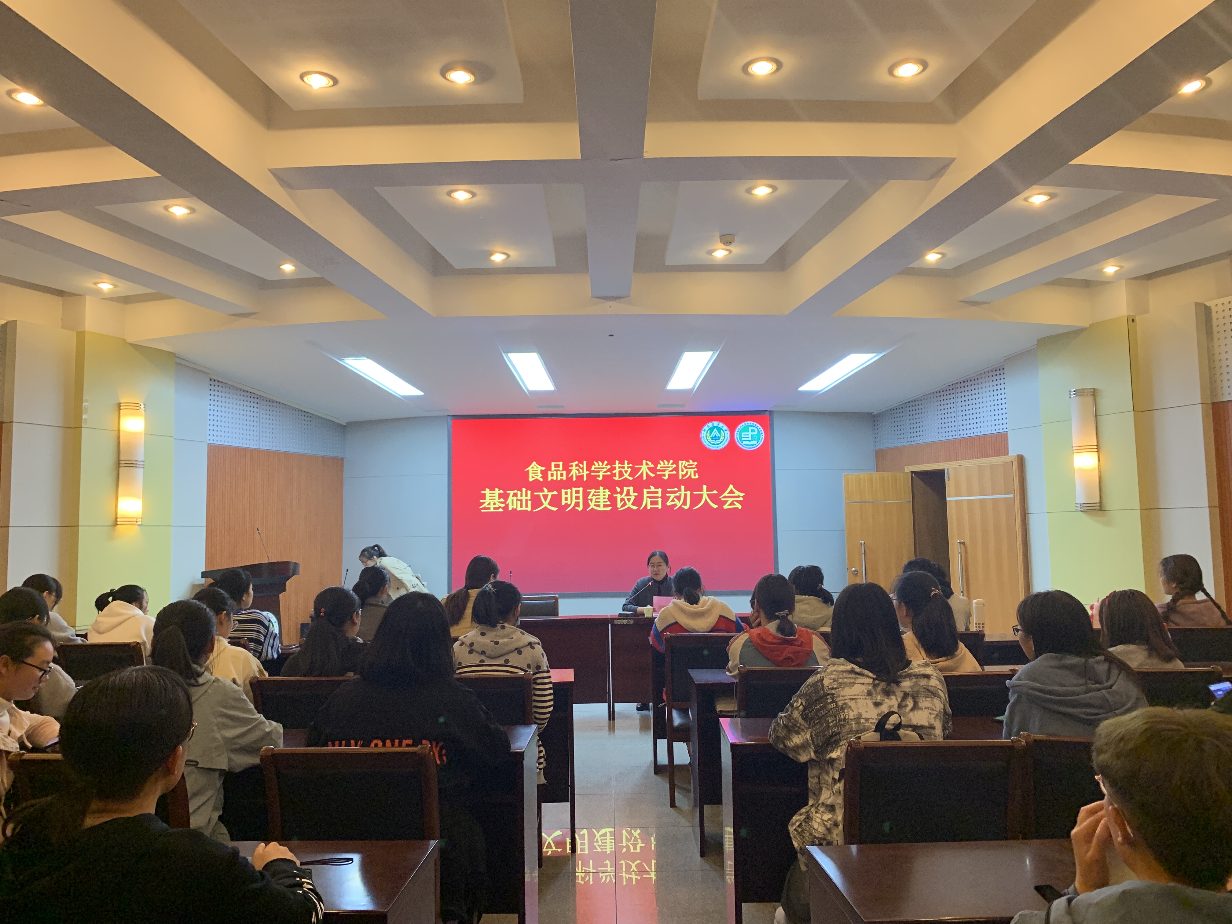 于文化路校区第一报告厅举行基础文明建设启动大会,院党委副书记李蓓蓓出席会议,学生骨干参加会议。