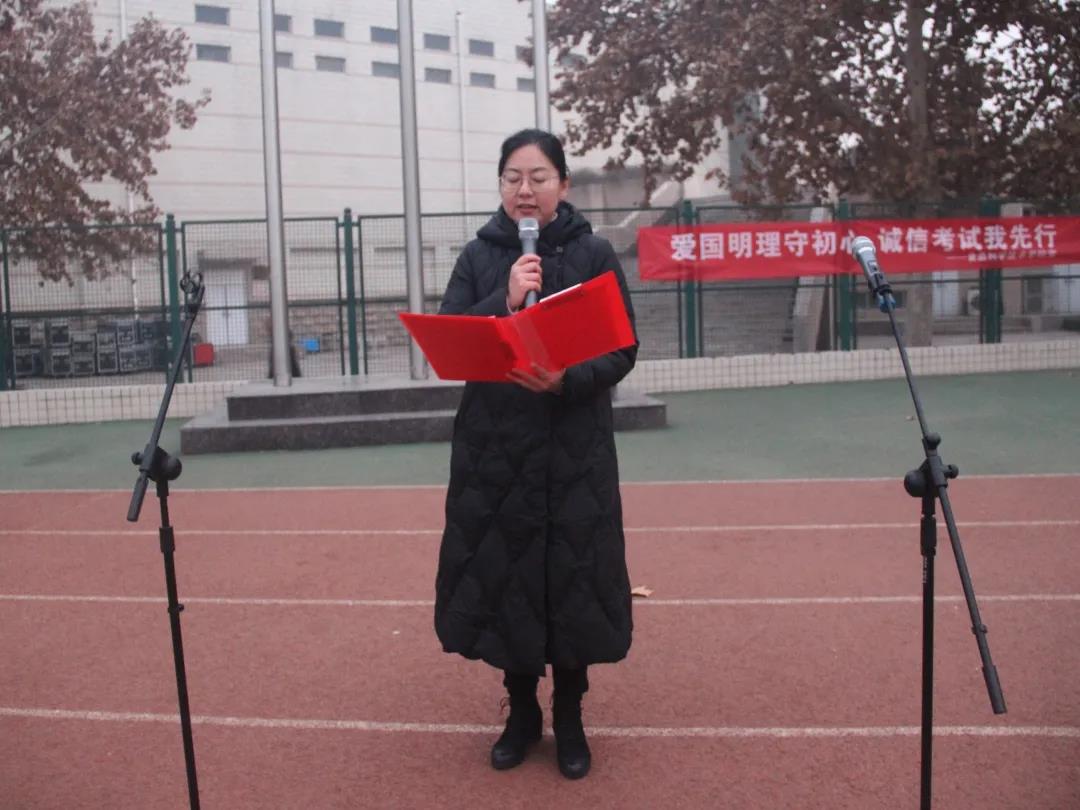 (通讯员:张瑞 姚智荣) 为弘扬爱国主义精神,提高学生诚信考试意识,12月28日,哔咔漫画在文化路校区田径场举行“爱国明理守初心,诚信考试我先行”主题升国旗仪式,全体师生参加,本次升旗仪式由院团委书记路平主持。