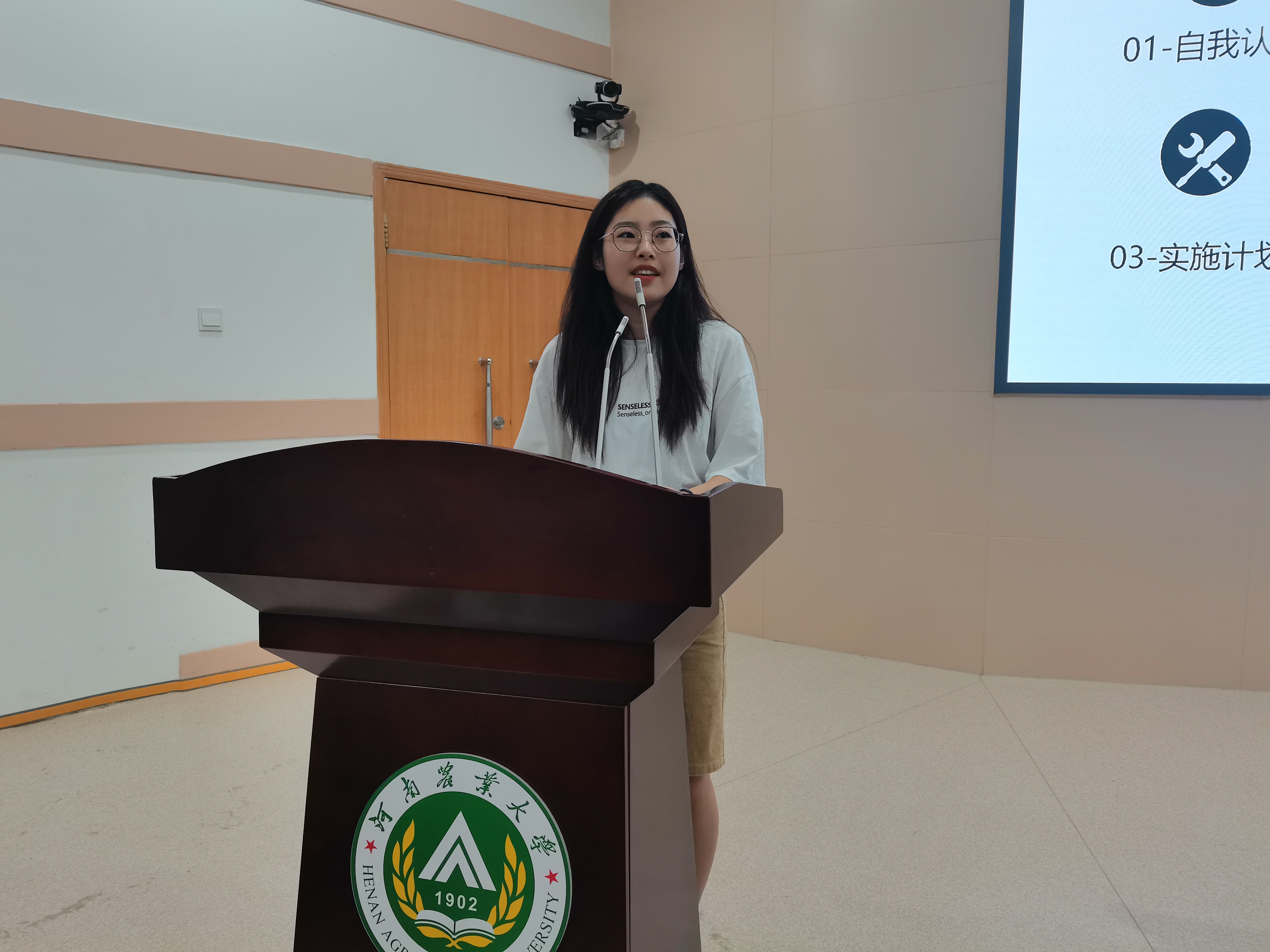 19级食检二班丰瑞向同学们分享了自己参加职业生涯规划大赛的经历和收获,并对同学们提出建议,进行职业生涯规划时要有真情实感,深入了解行业发展前景,以万变应万变。