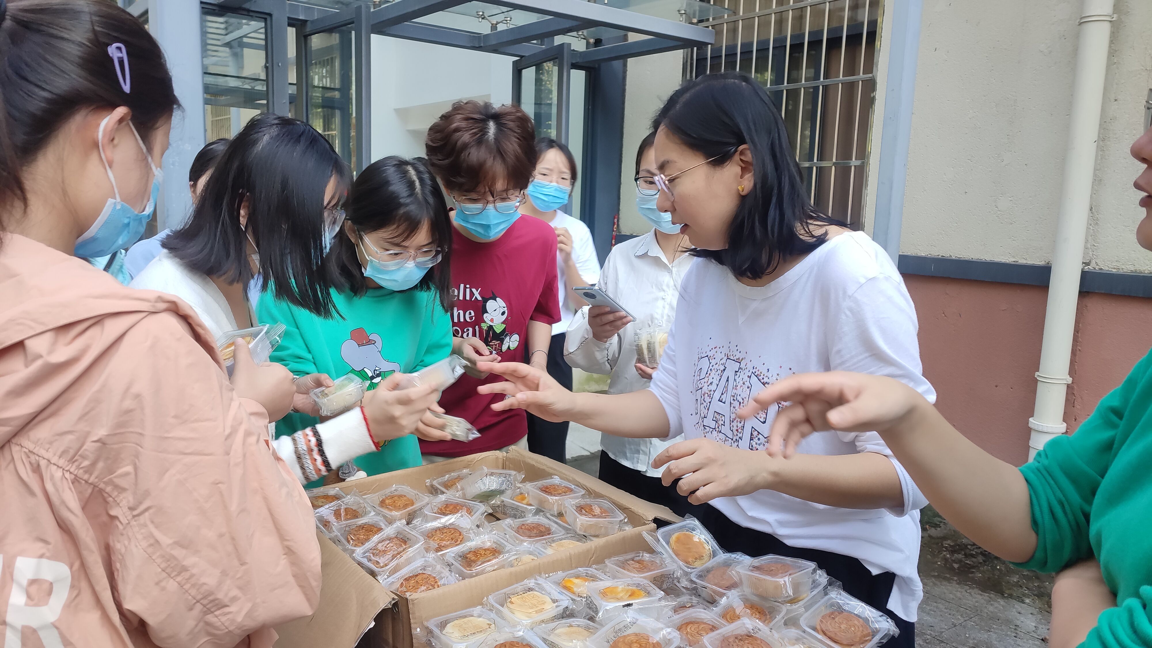 (通讯员:周洁)为给留校学生创造良好的中秋佳节氛围,9月20日,院党委副书记李蓓蓓、院辅导员秦可梦前往留校同学宿舍楼下,为留校学子发放月饼。