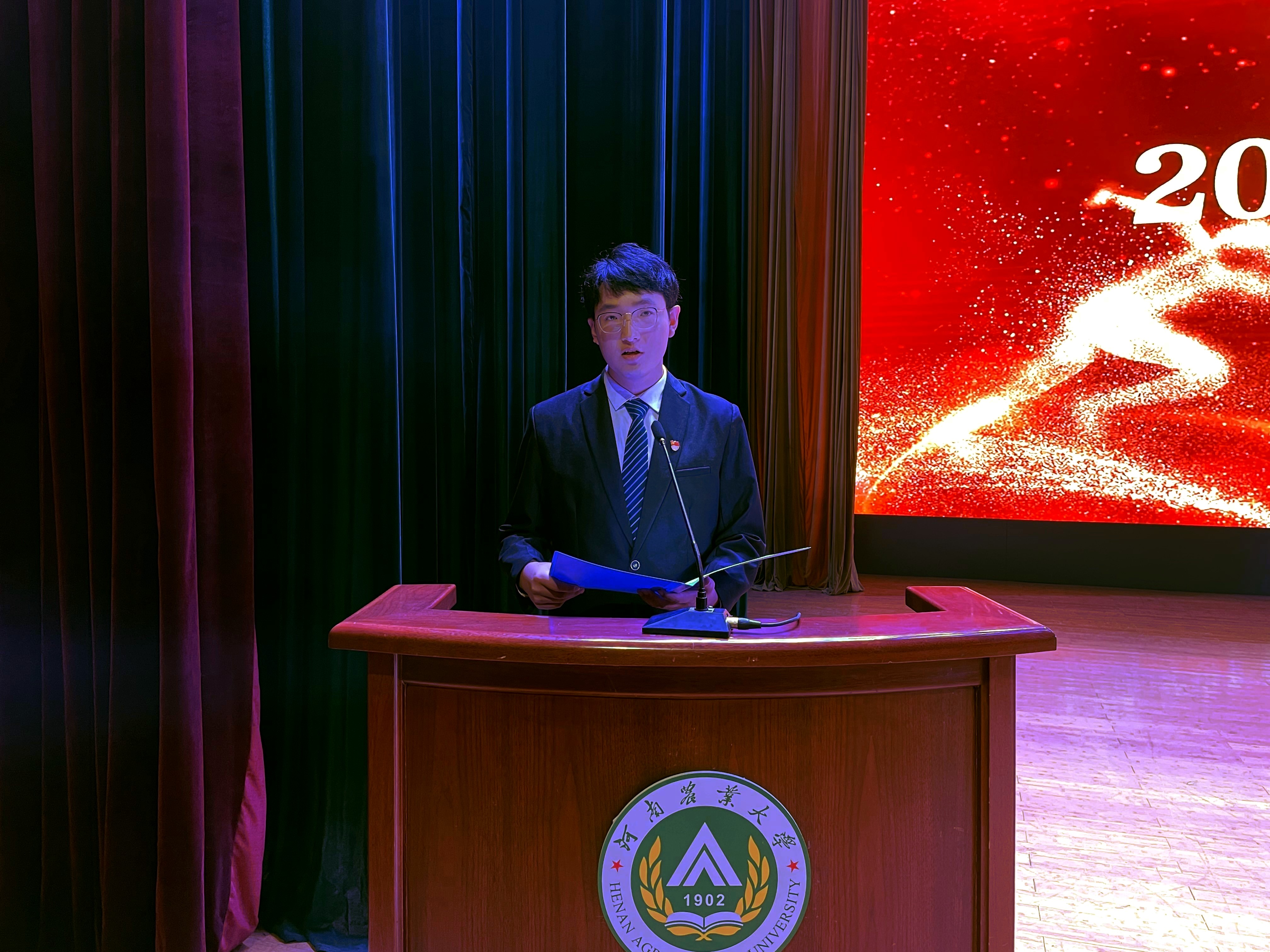 研究生导师代表李宁、新生班主任代表张西亚、研究生新生代表张伟峰、本科生新生代表许佳睿共同向同学们寄语,希望大家在人生的新起点树立新理想,胸怀远大抱负,向优秀毕业生学习,团结奋进,严谨求实,在农大谱写人生新的篇章。