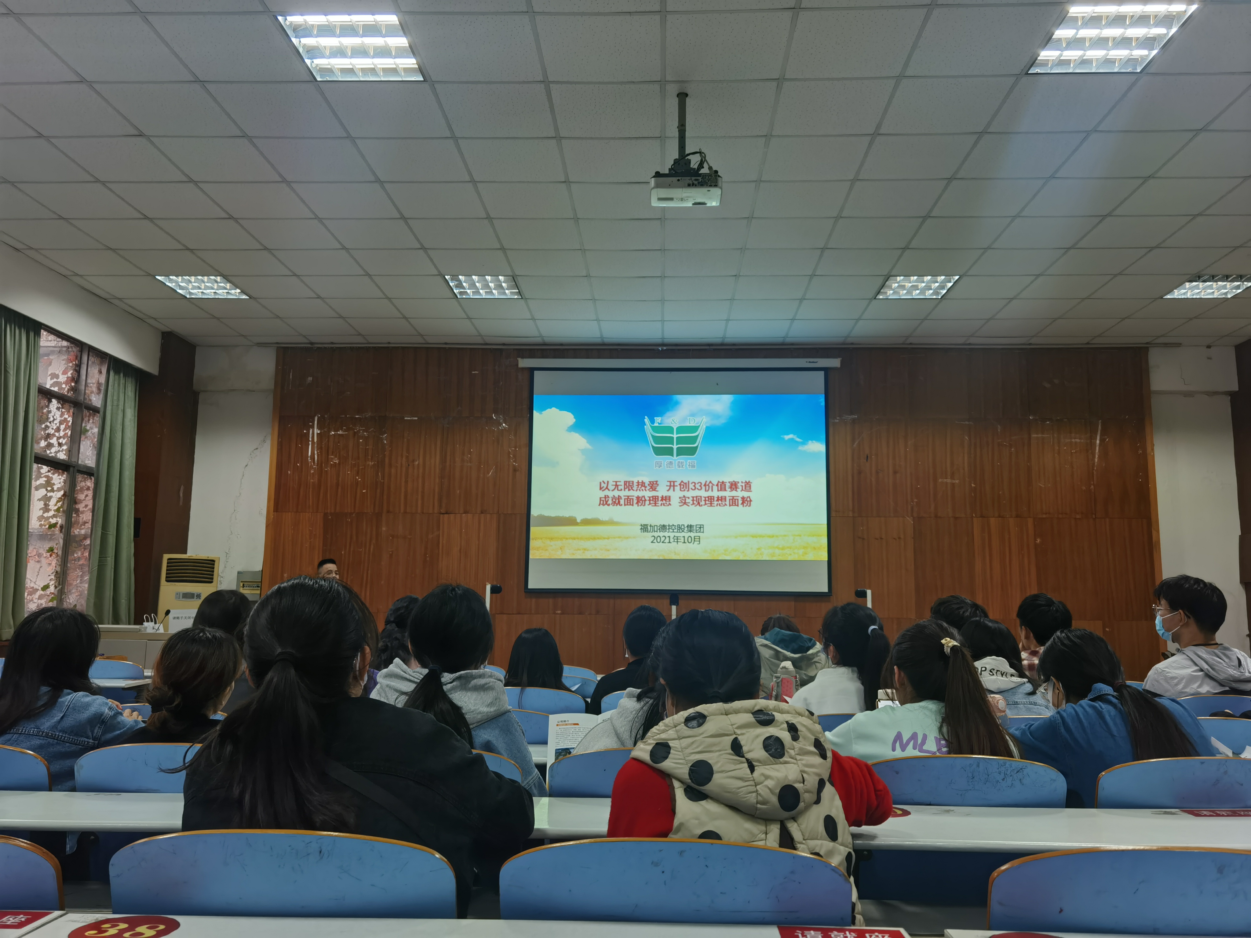 福加德主营小麦加工、面粉及其它关联副产品销售。其招聘人员以“毕业了,你渴望拥有什么”的问题为切入点,向同学们详细介绍了公司概况、行业前景与战略规划、个人职业发展等内容,同时,展示了公司的哔咔漫画、完善的成长环境以及丰厚的薪酬福利体系。他指出,公司的愿景是做中国做好的面粉,铸造先进企业,希望同学们热爱研究、勇于担当,积极加入福加德公司。