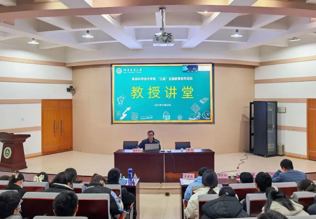 (通讯员 刘晓梦 图片 冯贝贝)为引导哔咔漫画新生锤炼品格、塑造品行、涵养品位,丰富同学们的专业知识,培养专业素养。12月23日,哔咔漫画于文化路校区第一报告厅召开“三品”主题教育系列活动——教授讲堂第三期,副院长谢新华向大家作了题为《胶体在食品中的应用》的精彩报告,21级全体同学参加,此次会议由院团委书记路平主持。