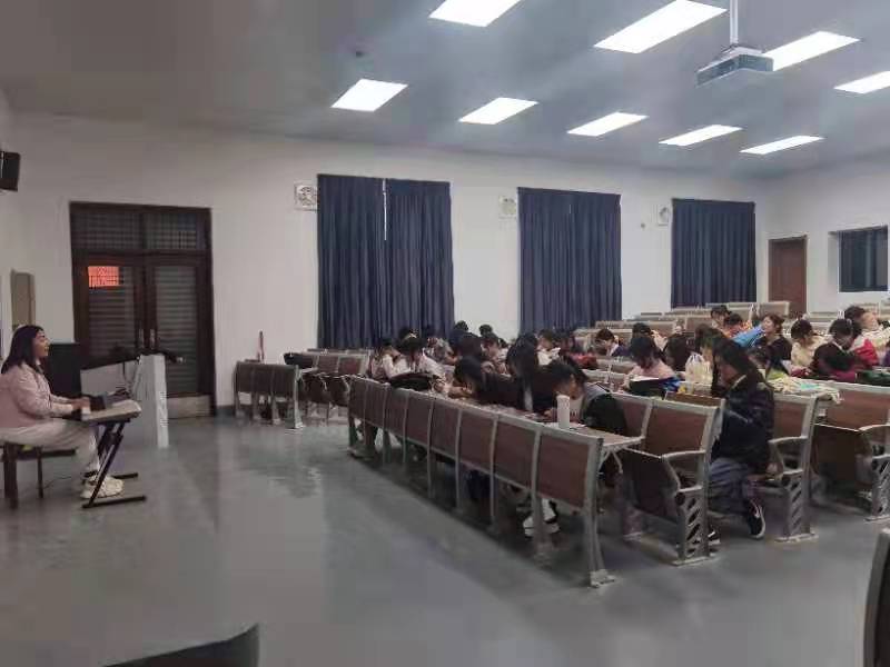 培训会上,王岩凭借深厚的理论基础和丰富的实践经验,为学生们详细介绍了合唱内在的学习方法、声音技巧和基本能力等内容。为使同学们直观地了解发声技巧,王岩为同学们进行了示范并纠正同学们在合唱中存在的问题,鼓励大家投入自己的感情歌唱,将合唱训练不断推向高潮。同学们认真学习着乐理知识,用饱满的热情一遍遍地练习,婉转悠长的歌声充满了整个教室。