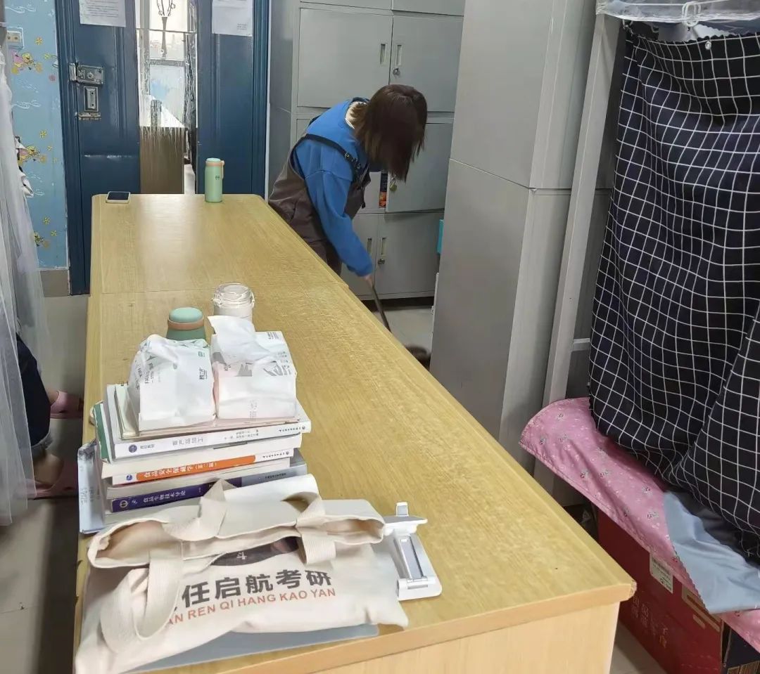 安排,积极投入宿舍大扫除活动,热情高涨、相互合作,一起收拾床铺、整理书桌、清理垃圾、扫地拖地等。同学们严格按照学校疫情防控工作要求,做好宿舍卫生的清洁,全覆盖消除卫生死角。