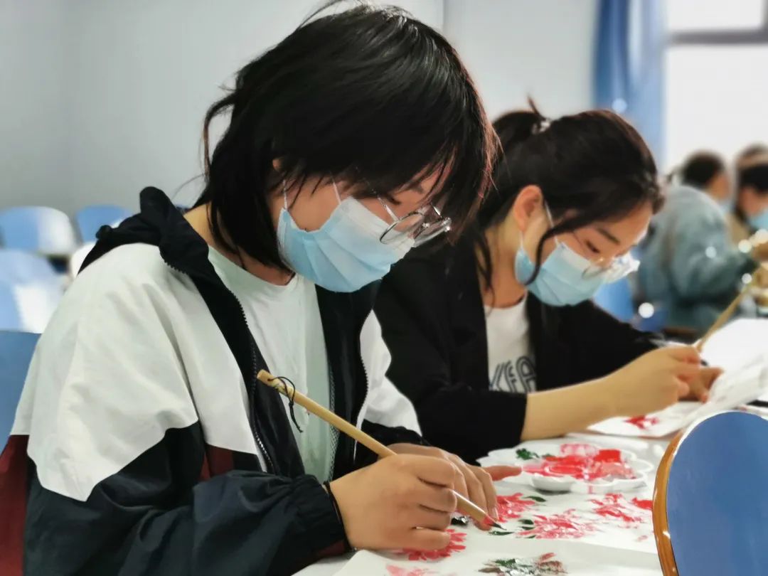 画的美感均凝聚在一点一滴的细节中。“握笔要准确,绘画要用笔的中间段,画笔要立起来一点,以保证花瓣的饱满度。”姚黎老师耐心地向同学们讲解了国画的特点和绘画技巧,并亲自示范。同学们全神贯注,火热青春和传统在此刻碰撞,融为一体。