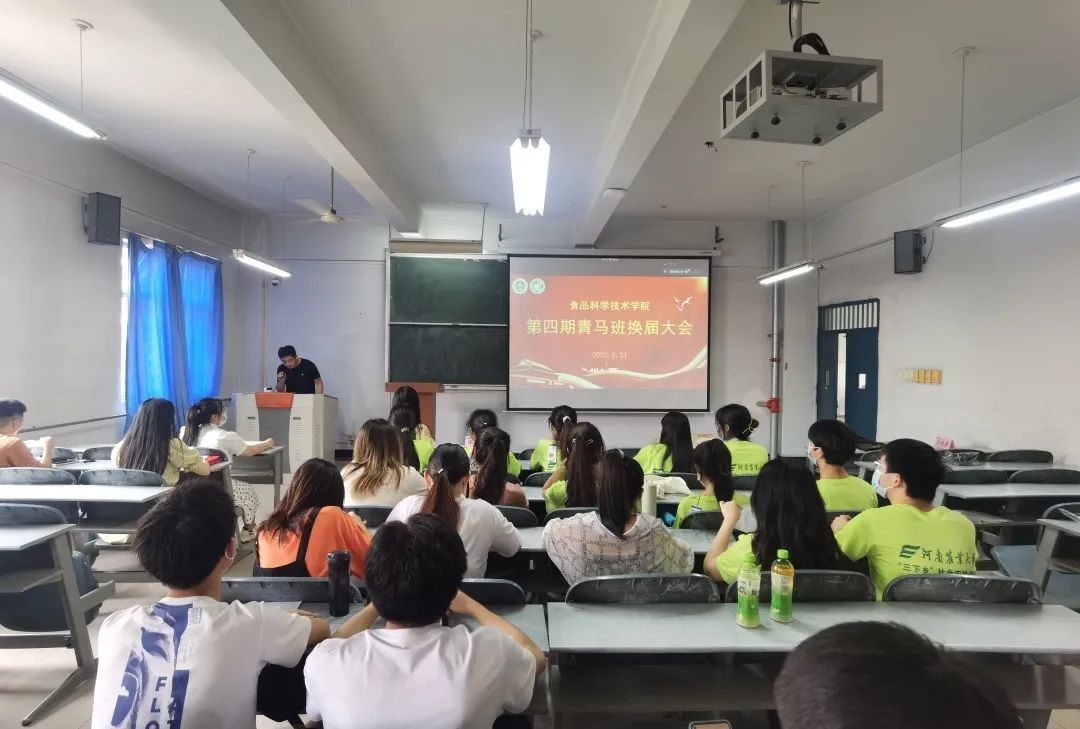 第四期青马培训班顺利结业学员名单。路平,张金龙依次为优秀学员颁发荣誉证书,为第四期青马班毕业学员代表颁发结业证书并扣上“青马培训第一粒扣子”。第四期青马班支书朱亚威对第四期青马班培训学习成果进行了总结汇报。她希望广大青马班成员要不牢记党的要求,为党的伟大事业奉献青春。张金龙宣读了第五期青马培训班学员及班委名单。路平为新一期青马班学员授旗。第五期青马班支书陈曦代表第五期青马班全体学员做出承诺,将进一步坚定理想信念,努力成为马克思主义的拥护者,实践者和传播者。