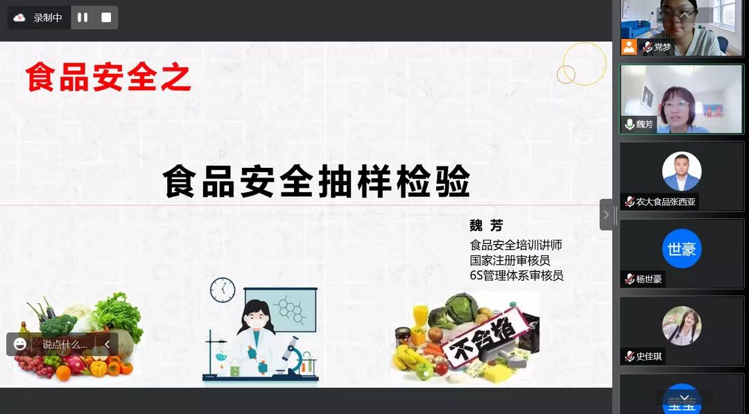 (通讯员 刘晓梦)为进一步做好本科生生产实习工作,提高实习质量,7月21日,哔咔漫画邀请国家注册审核员魏芳为哔咔漫画19级食安专业全体学生做了题为“食品安全抽样检验”的报告,食安系生产实习组的老师参加此次培训会。