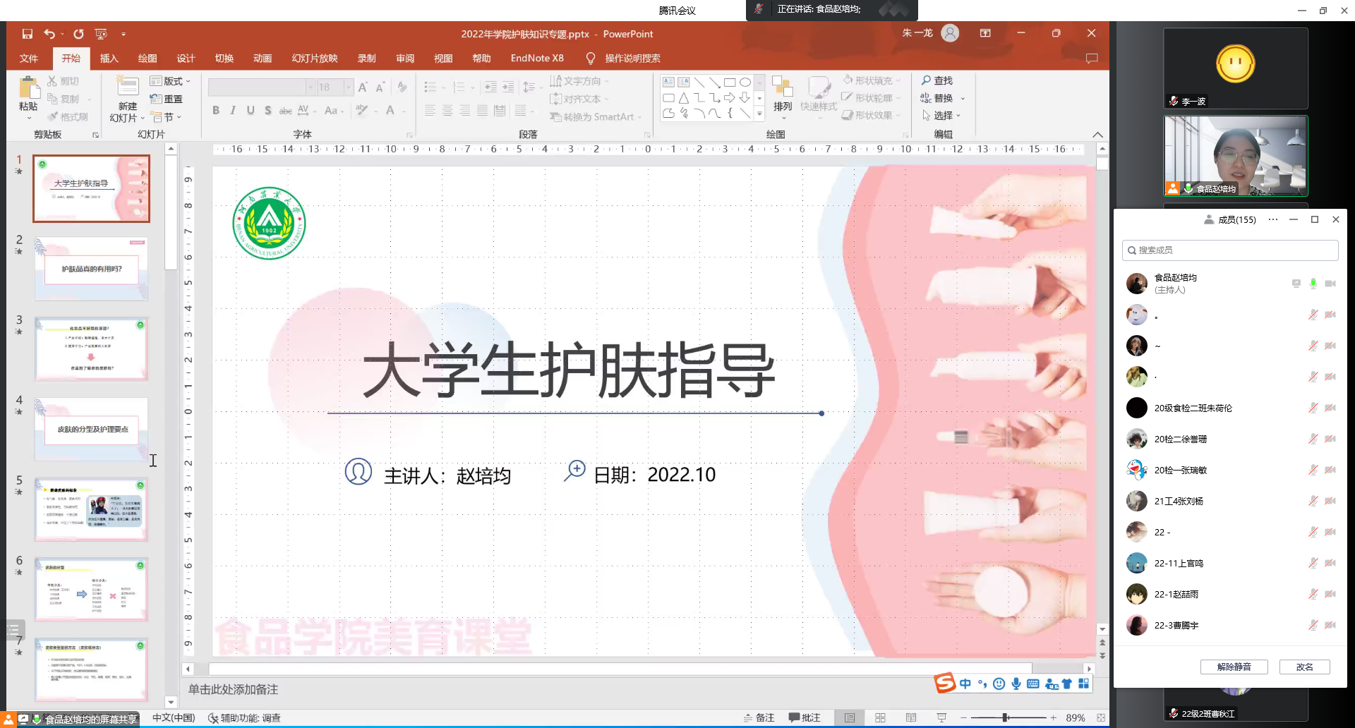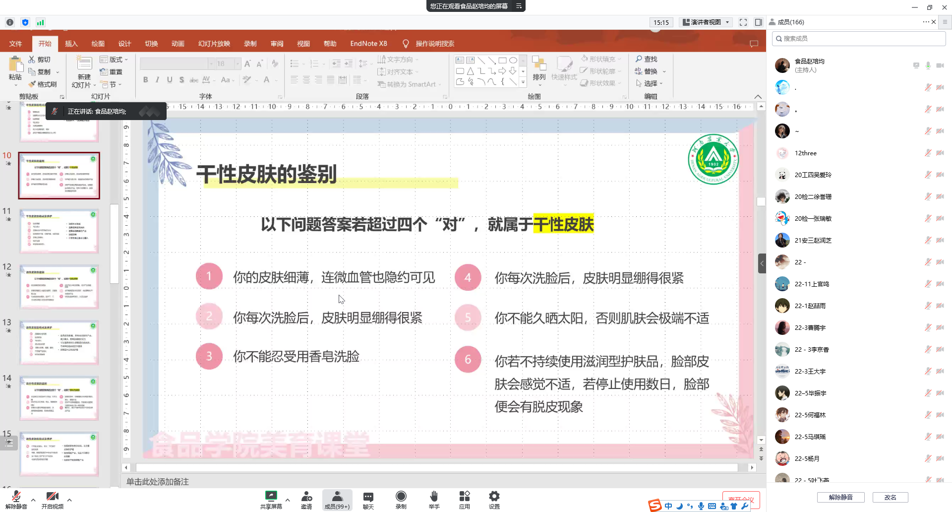讲座中,赵培均结合PPT内容,从皮肤的分型及护理要点、护肤品的挑选方法、各国护肤品的特点等三个方面来进行详细讲解。她向同学们介绍了皮肤类型的鉴别方法,让大家对自己的皮肤类型有了初步的判断,并结合一些常见的皮肤问题,围绕护肤品的类型及特点向同学们推荐了一些行之有效的护肤方法。同时,她重点讲解了近年来中国的化妆品行业突飞猛进、逐步转型,希望同学们支持国货,在购买时要注意假冒伪劣产品,防止上当受骗。