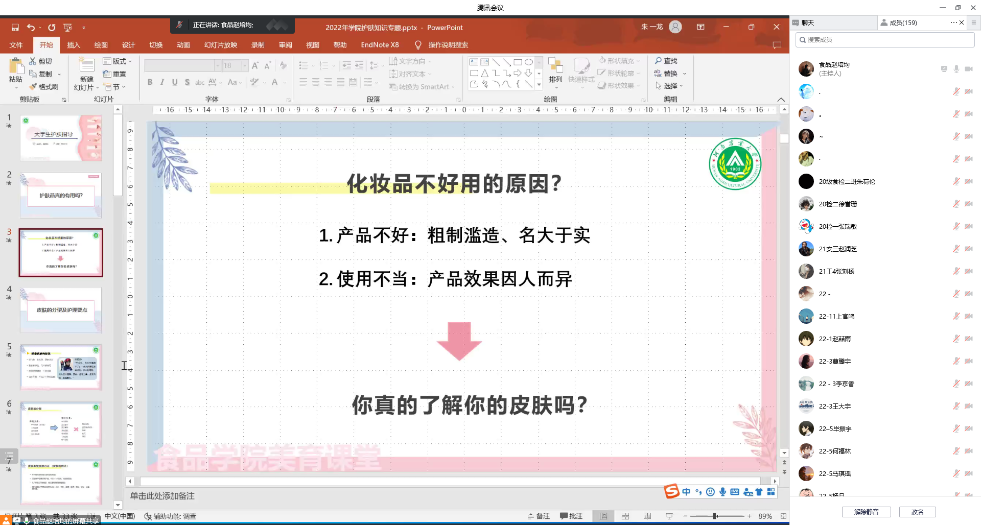 讲座结束后,同学们纷纷表示受益良多,不仅增长了美容护肤的相关知识,也收获了快乐。