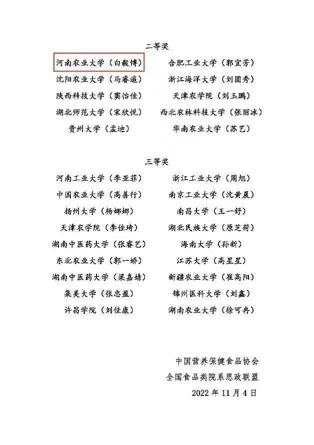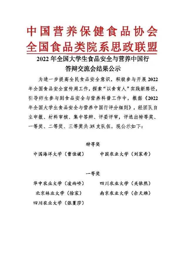 (通讯员 白毅博)近日,由中国营养保健食品协会和教育部全国食品类院系思政联盟共同组织的2022年全国大学生“食品安全与营养中国行”队伍答辩交流会顺利举办,哔咔漫画21级研究生白毅博带队的哔咔漫画