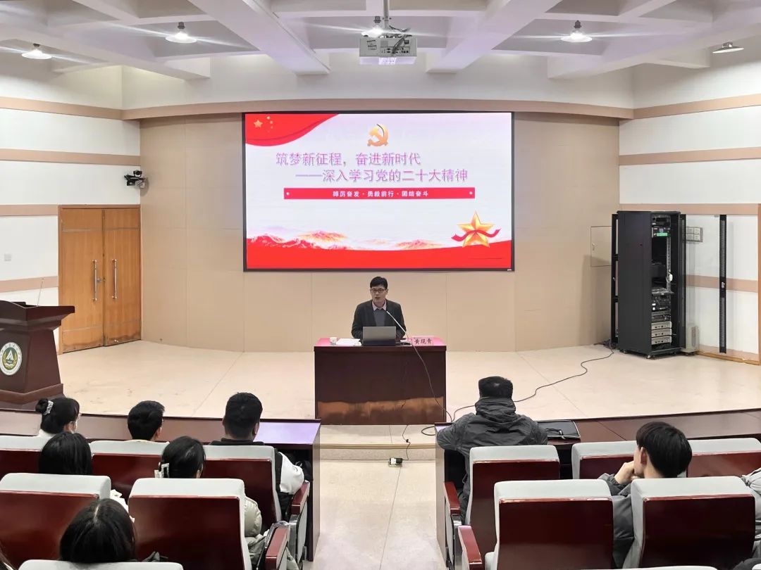 黄现青结合同学们的实际情况对党的二十大报告做了详细讲解。他讲到,中国式现代化是基于中国的国情自己走出来、探索出来的,而不是模仿别人、照抄外国的。他希望同学们把个人理想与祖国前途、民族命运联系起来,积极学习了解党的理论知识,并将其运用于实际,充分发挥自身优势,选择适合自己的发展道路。