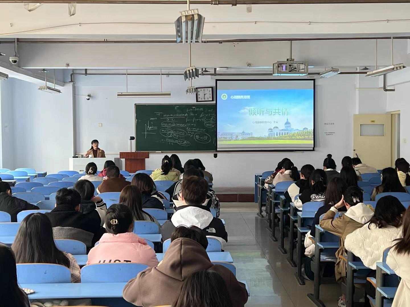会议伊始,常丽详细讲述了倾听、专注与观察的关系,人际沟通的三大载体以及倾听的八大技巧,通过解析“听”的繁体字强调了倾听的重要性。同时,她以两句名言引出共情,通过弗洛伊德的人格结构理论介绍了共情的三个层面,即超我、自我、本我。她表示,倾听是为共情做铺垫,共情即同感,需要感受对方的情绪,通过语言或者肢体语言给对方反馈,并建议同学们从超我共情做起,忘掉自己的认知、观点和态度,完全进入对方的世界。