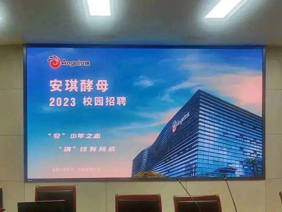会议伊始,梁威通过播放视频宣传片简单讲述了安琪酵母的发展战略和公司理念。他向同学们介绍了集团总部地址湖北宜昌的地理位置、经济发展以及人才引进政策,强调了这座城市对大学生的包容性。他就发展历程、产品应用、获得荣誉等方面对公司进行了详尽的介绍,并借此提出应当以求职者的诉求为核心进行招聘。他从“求职者关注的五个点是什么”出发,对校招政策的优待进行了多方面的讲解,向同学们展示了良好的企业形象。
