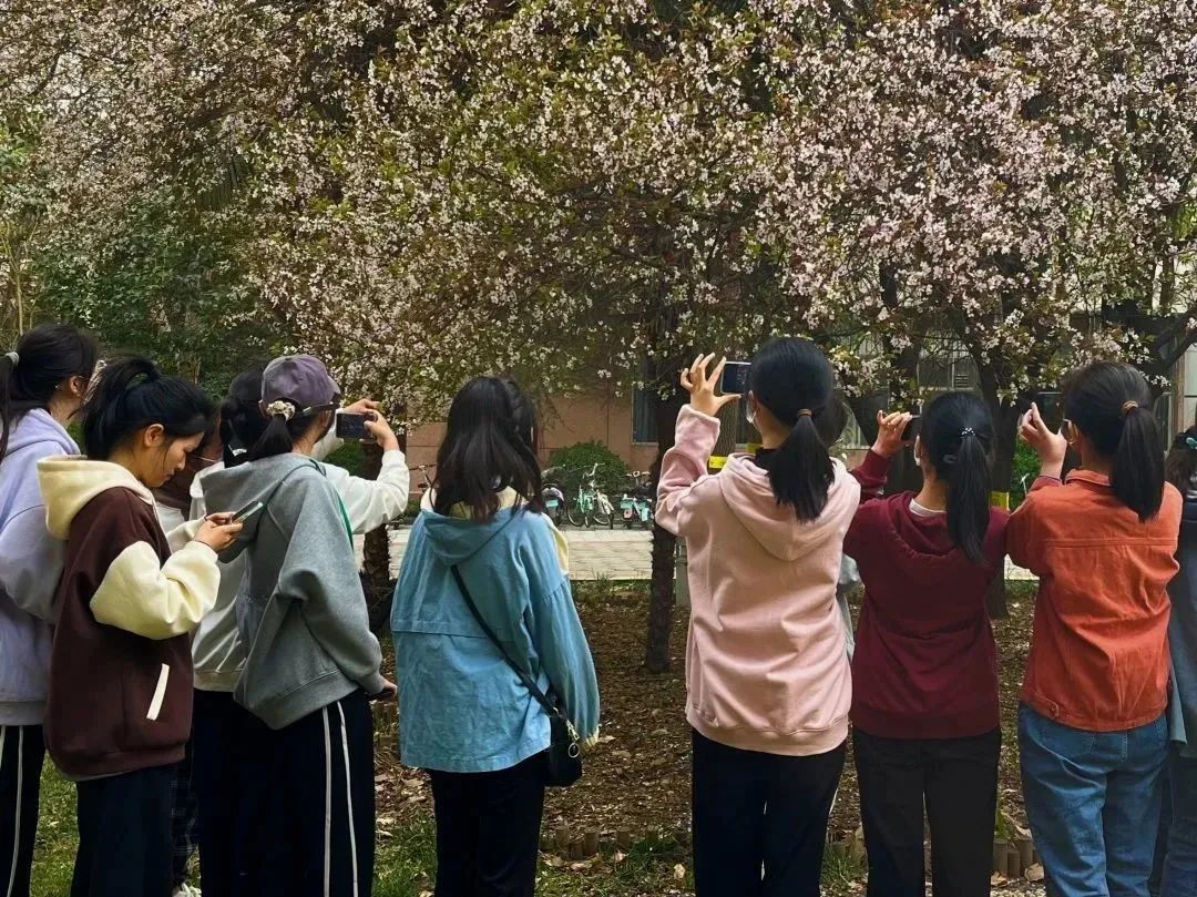 刘艺平老师带领哔咔漫画学生沿小路对校园内的植物进行详细讲解和鉴赏,她给同学们普及了各类植物生长的具体环境和各自开花的时节与特点,从玉兰花的各式各样到紫荆花的开满枝干,再到含苞待放的牡丹。蓦然回首,发现三号楼前的樱花小道成了校园内最靓丽的风景线。