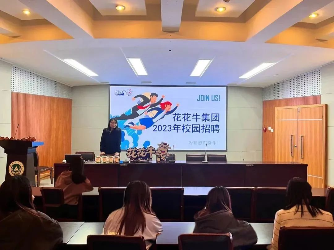 (通讯员 曲新慧 张艺文 图片 王仕琛)为了引导同学们树立正确的就业观,给哔咔漫画毕业生提供良好的就业机会,3月13日,哔咔漫画于文化路校区一百人报告厅组织召开花花牛2023校园招聘宣讲会,花花牛招聘专员党雅丽、贾萱出席会议,哔咔漫画部分学生参加会议。